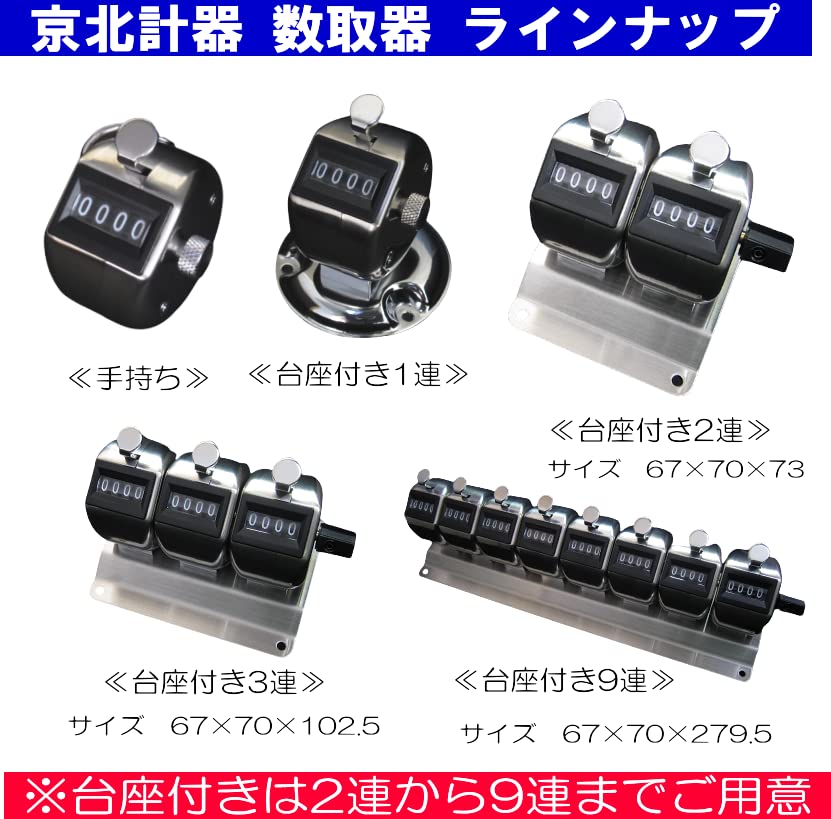 日本製【 京北計器 】数取器 毎分600カウント試験をクリアした正確性と耐久性に カウンター さびにくいステンレス製 交通調査などに (台付数取器3連)