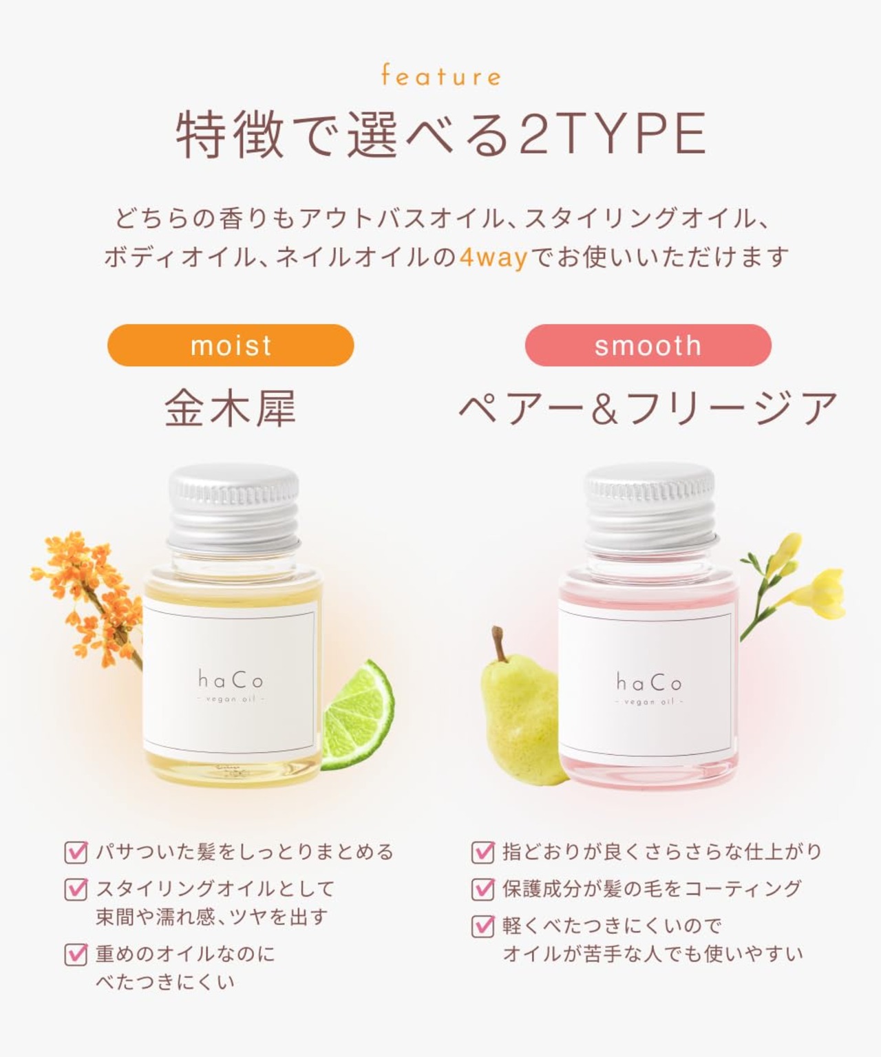 haCoヴィーガンオイルOS金木犀の香り ヘアオイル 30ml しっとり 洗い流さないトリートメント アウトバス スタイリングオイル マルチオイル メンズ レディース