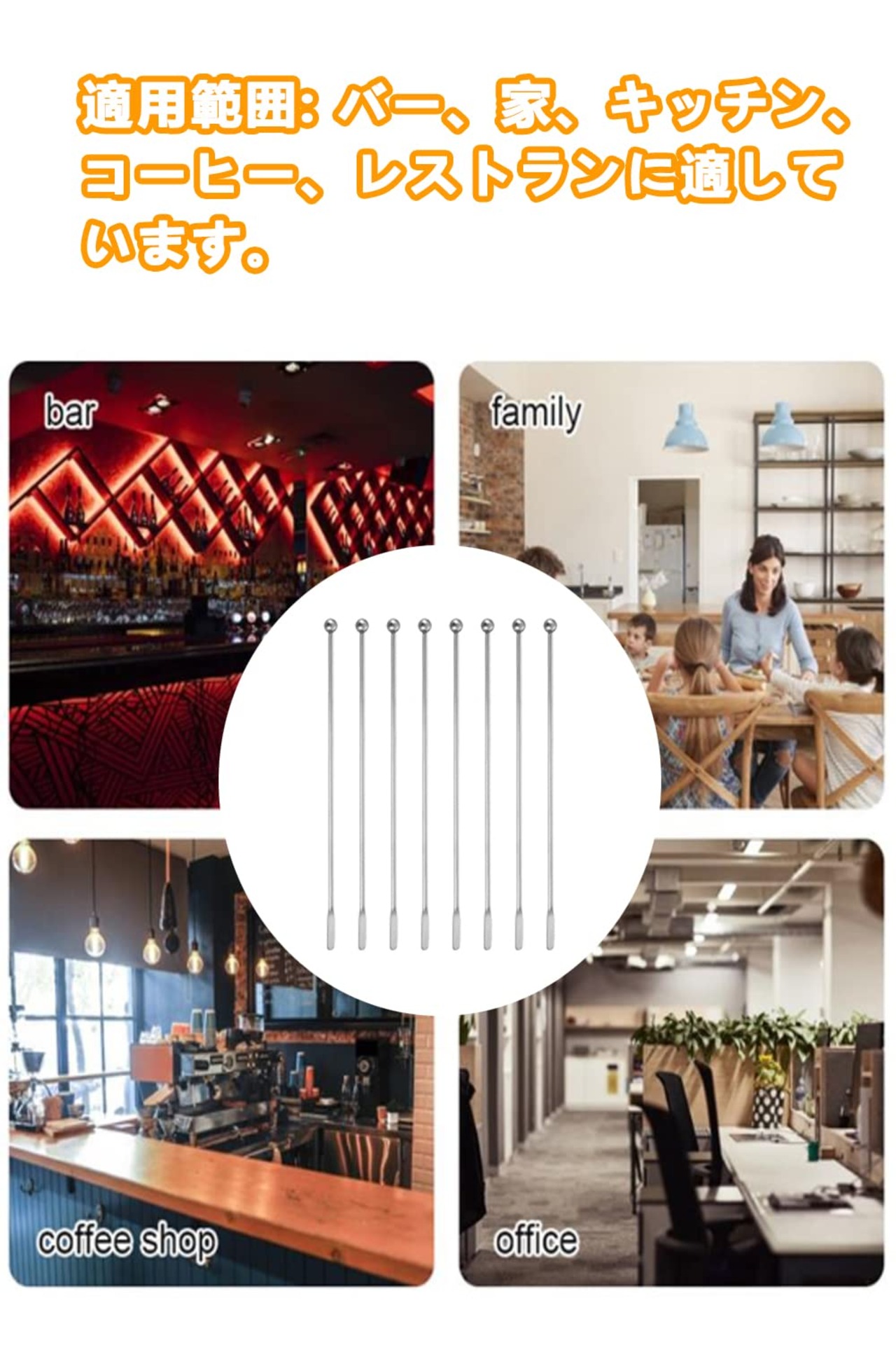 ?【商品仕様】パッケージ内容:ロングマドラー×8本、サイズ:全長19CM、材質:ステンレス製。