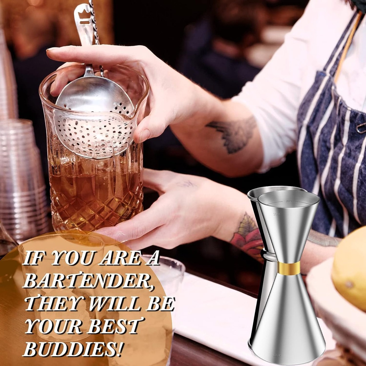 【最も基本的なバーテンダー用具】2つの最も基本的なバーテンダーツール:30ml/45mlオンスカップ×1、26cmバースプーン×1。バーテンダー愛好家、初心者、プロのバーテンダーに最適です。