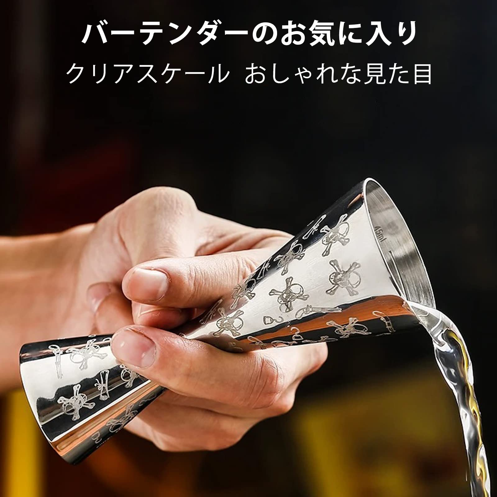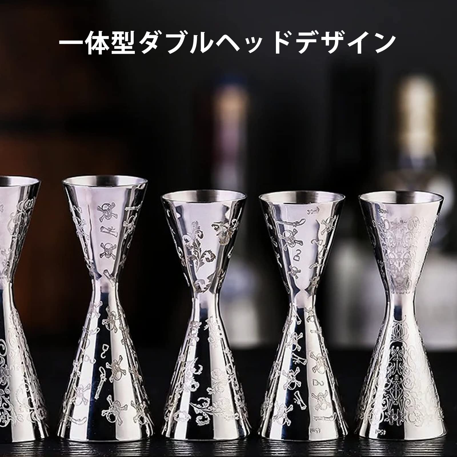 WOMLEX メジャーカップ 目盛り ジガーカップ カクテル ウイスキー 計量 一体型 ステンレス鋼 (葉っぱ, 30ml / 45ml)