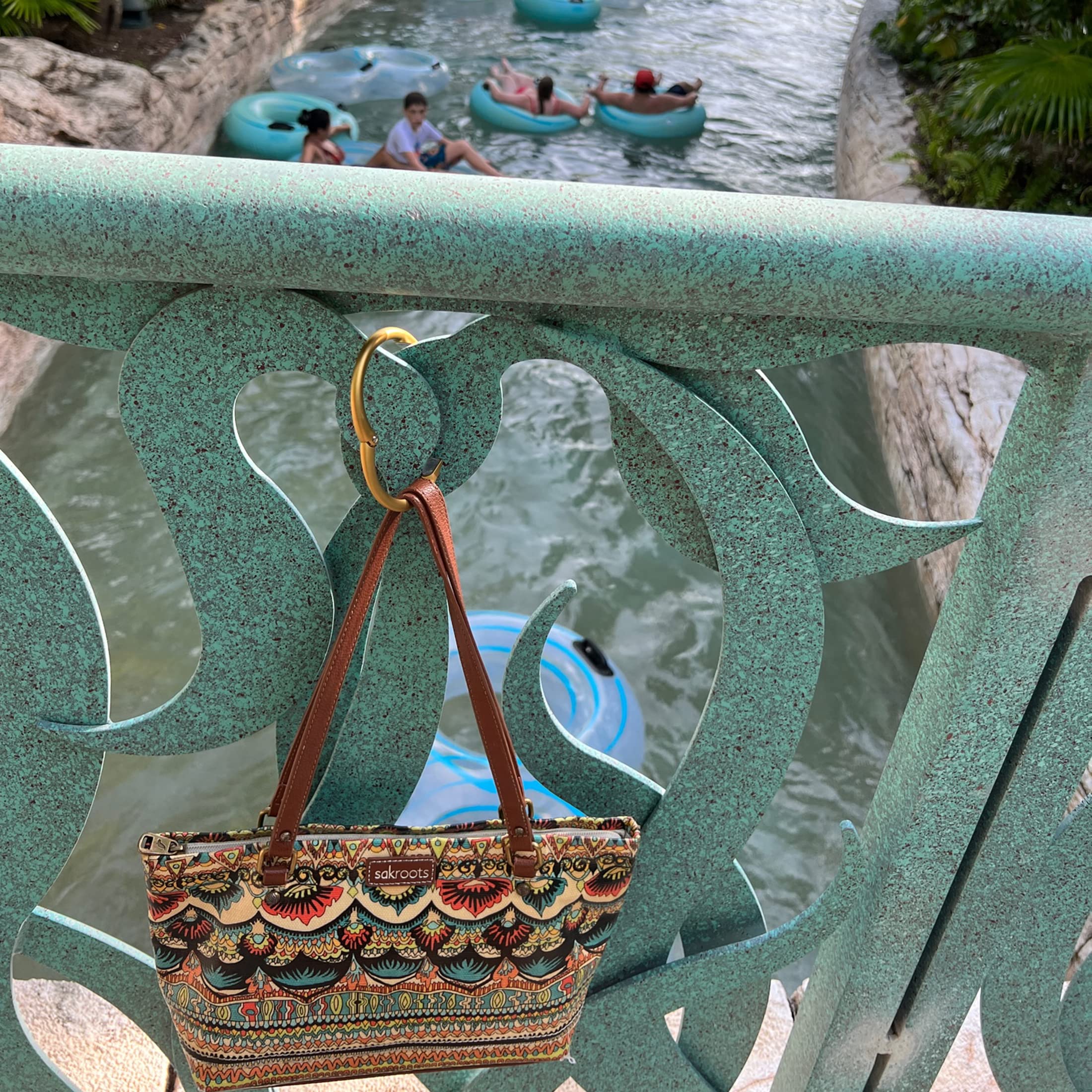 モダンなスプリングクロージングフックは、わずか1/2インチのスペースで、どんな面にもバッグを掛けることができます。