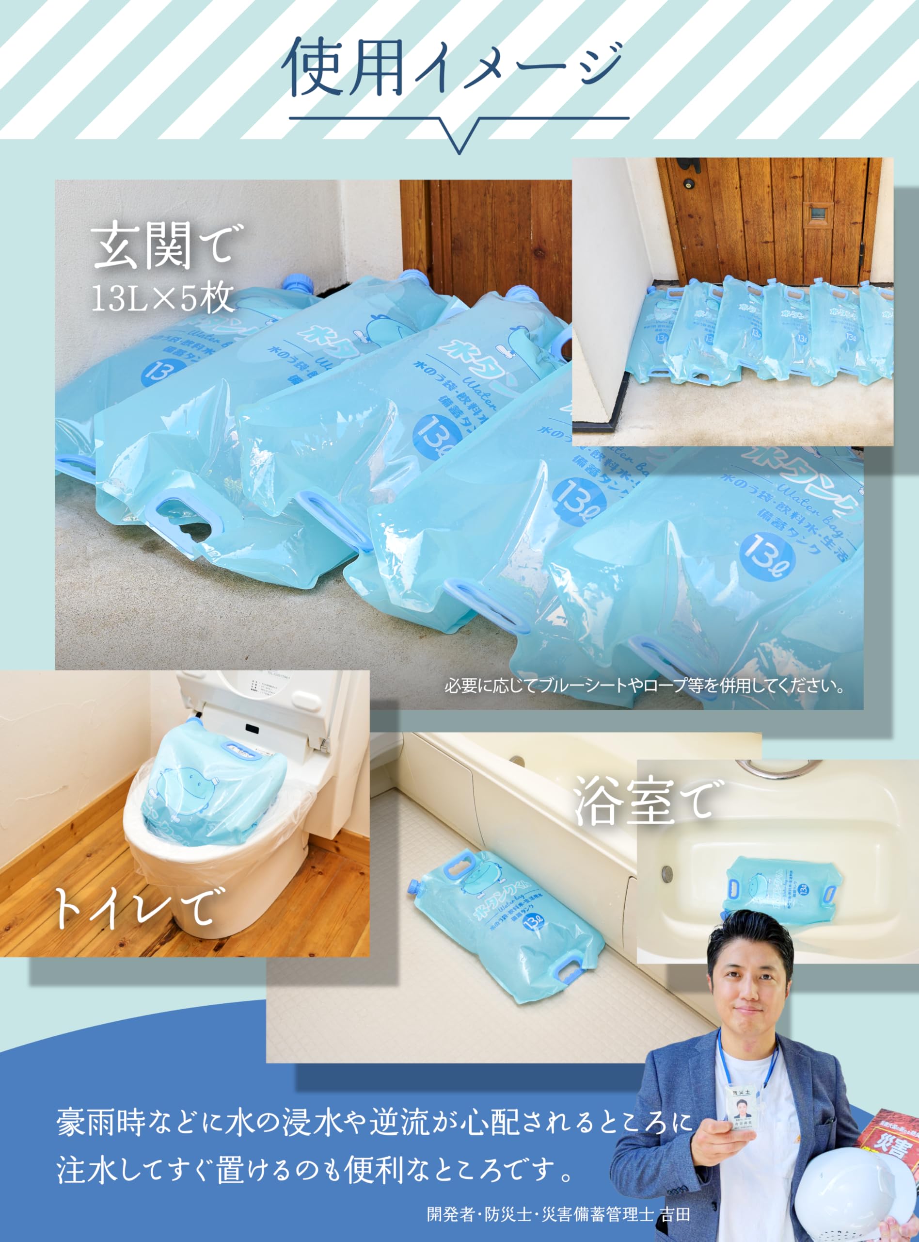 【防災士が開発!安心のチェックポイント】 ? 誰でも簡単に使えて、迷わず準備できる ? 繰り返し使える、しっかり丈夫な素材 ? 浸水対策だけでなく、アウトドアや洗車など日常にも応用可