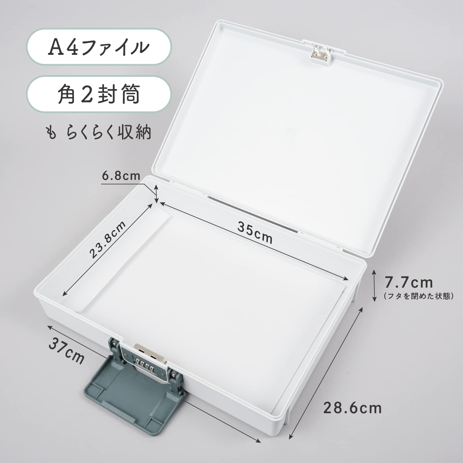 A4、角型2号封筒を折らずに収納可能