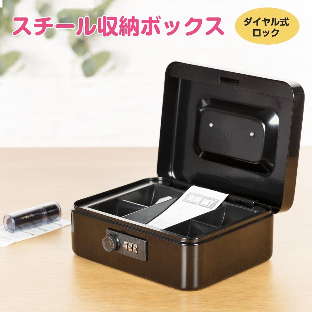 八番屋 手提げ金庫 ダイヤル付 B6サイズ キャッシュメイト スチール製 家庭用 オフィス M200M ブラック