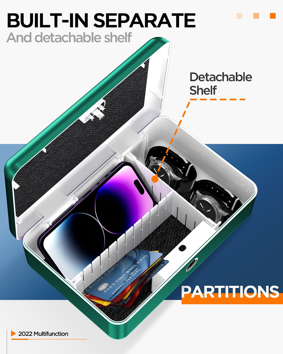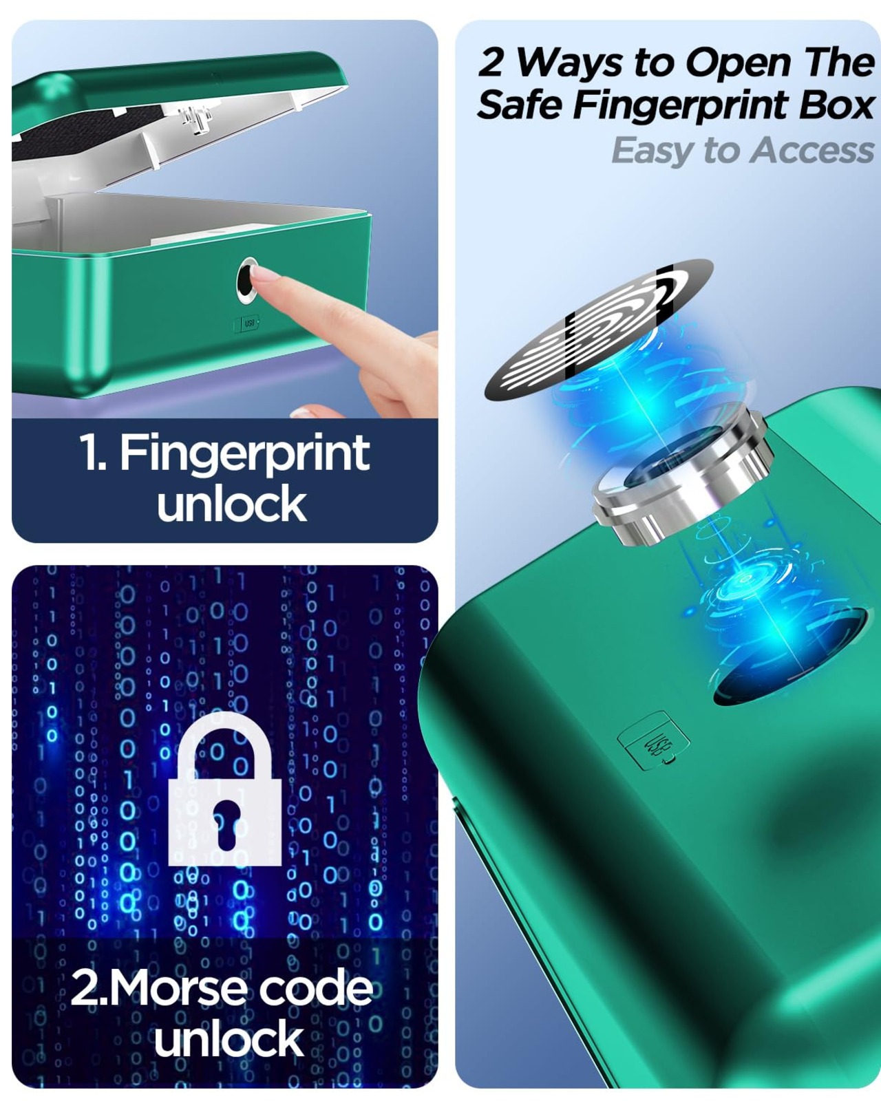 AICase バイオメトリック指紋収納ボックス ポータブル 現金 ジュエリー セキュリティケース ロックボックス 安全 コンビネーションロック 車 自宅 オフィス 旅行用 グリーン