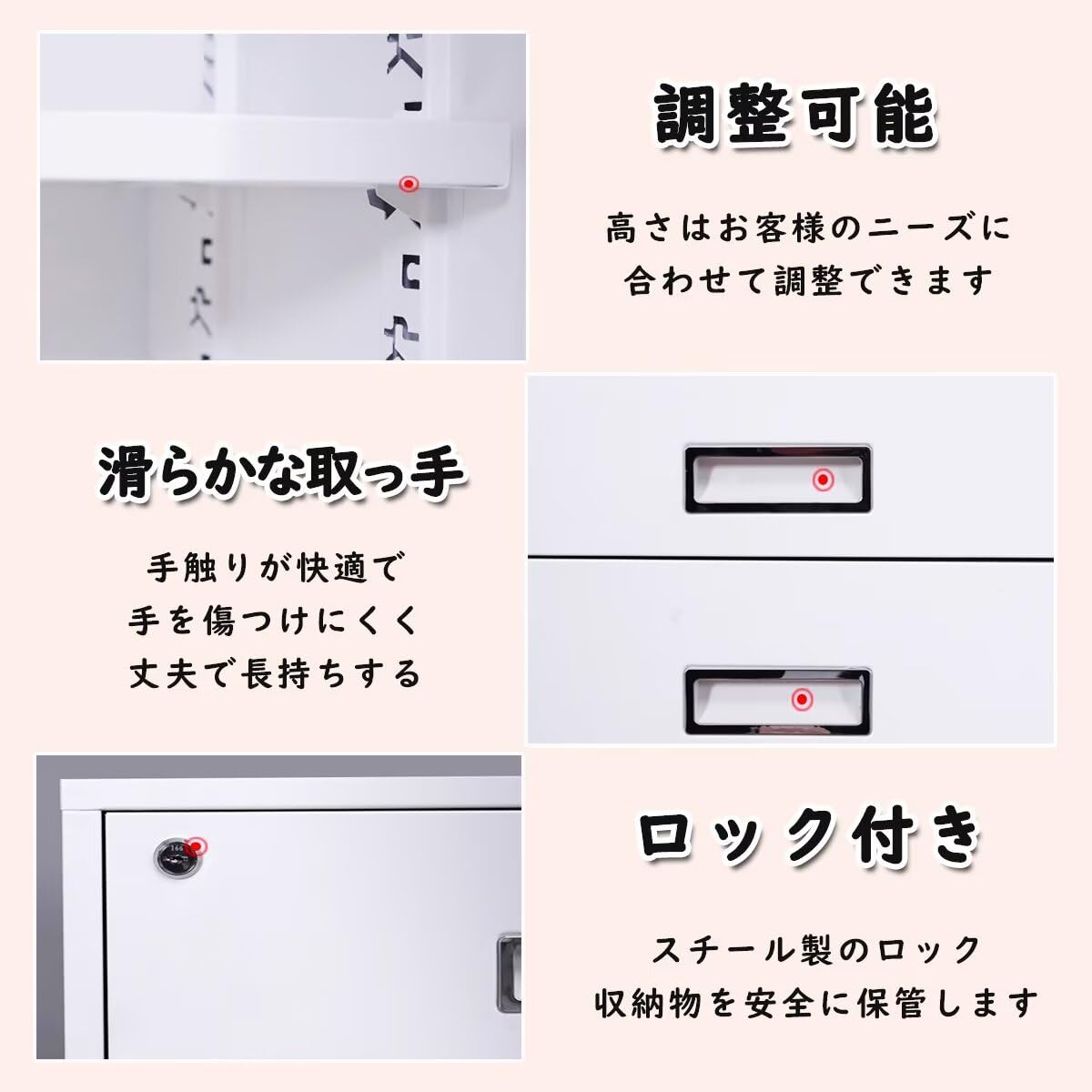 【材質】オフィスキャビネットの耐久性と安定性を確保するために、キャビネットは高品質の鋼板で作られています。 ファイルやアイテムの収納という基本的なニーズを満たすだけでなく、スペースの有効活用や整理整頓にも役立ちます。オフィスのスタイルに合わせて、幅広いスタイルとカラーをご用意しています。