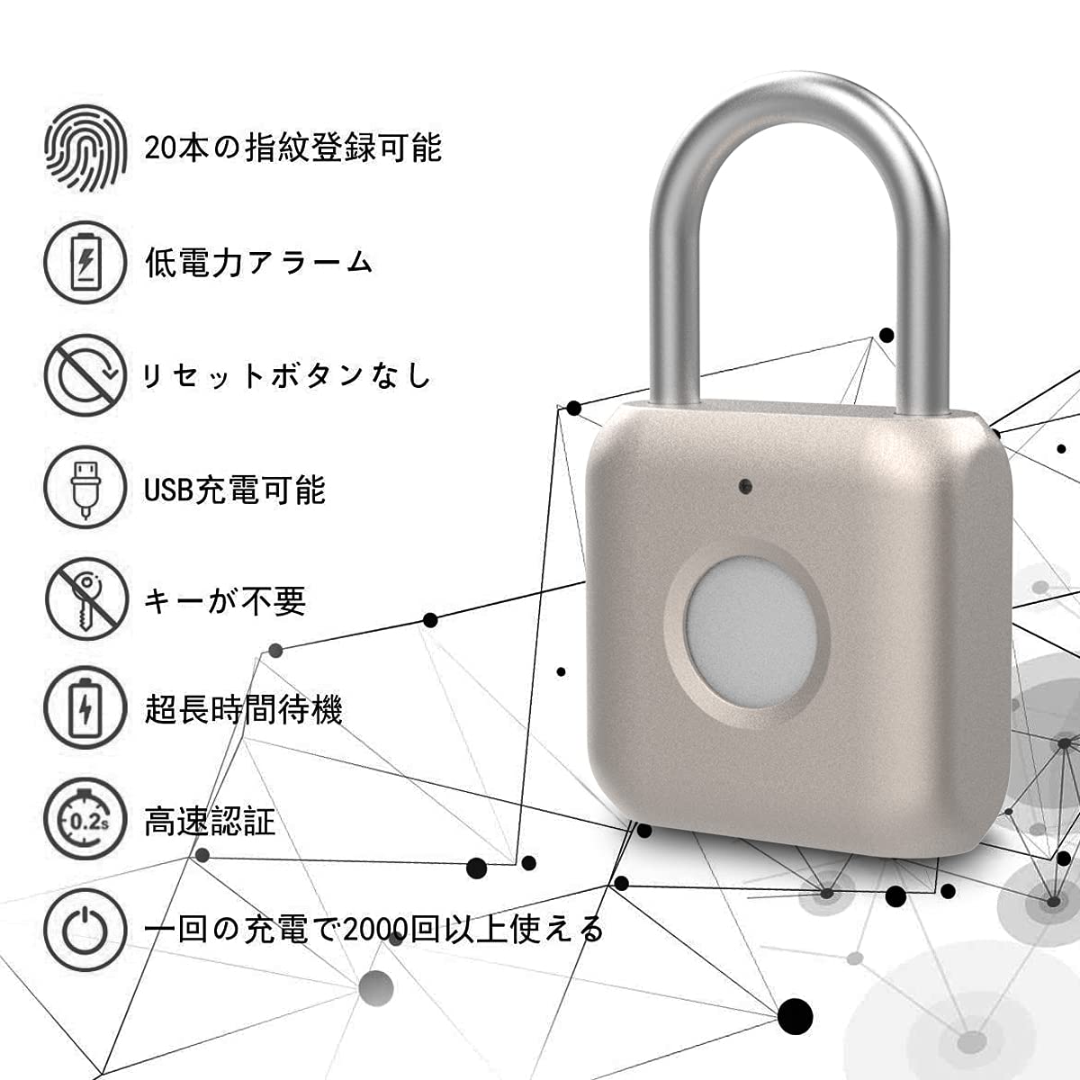 【丈夫・安全性高い】指紋ロックはステンレスの掛け金と高密度の芯合金全金属本体を採用し、丈夫で安全性が非常に高いです。指紋認識モジュールの解像度は120*120 PXに達し、自主学習アルゴリズムと合わせ、誤認識率は0.01%未満にも達します。