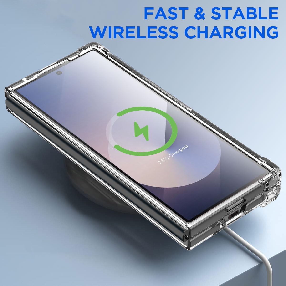 バッテリーへのメリット:Samsung Galaxy Z Fold 7のクリアケースは放熱性に優れ、充電中でもバッテリーを保護します。ハードケースや厚手のケースとは異なり、この冷却カバー素材は比熱容量が高く、微細なドットパターンにより、より速くスマートフォンを冷却します。