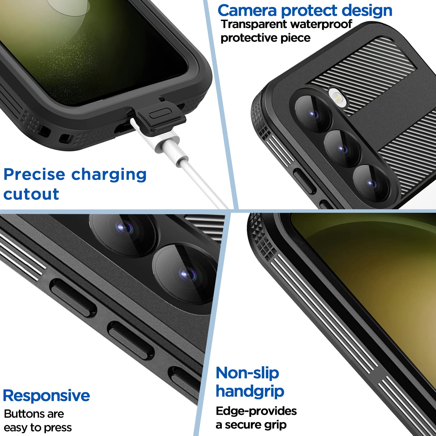 【IP68認定防水】水中完全密閉IP68認定。Samsung Galaxy S24防水ケースと互換性があり、水深6.6〜10フィート/2〜3mに30分間沈めるように設計およびテストされており、水中で写真を撮ることができます。