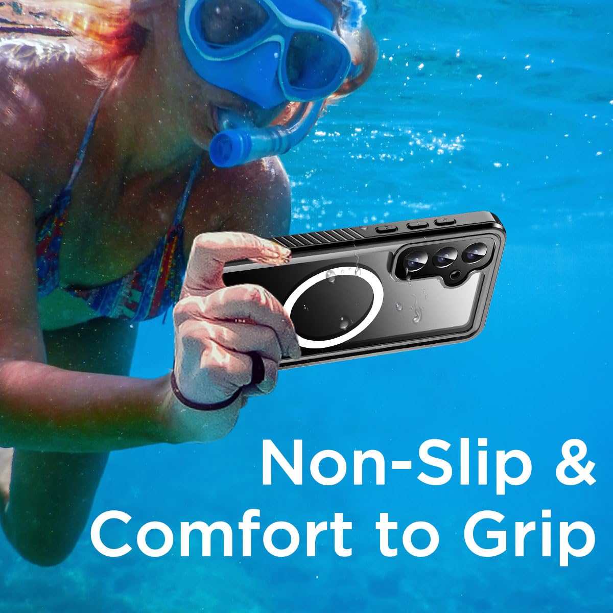 【IP68認証防水】水中完全密閉IP68認証Samsung Galaxy S24 FE防水ケース、6.6-10ft/2-3mまで30分間水没可能なように設計され、テストされ、水中で写真を撮ることができます。