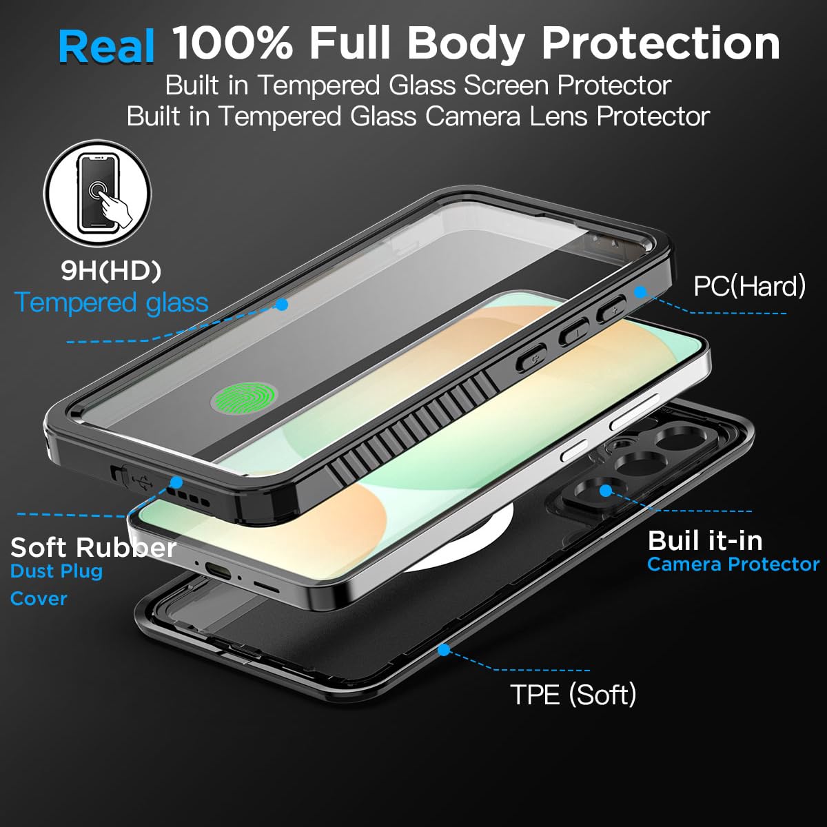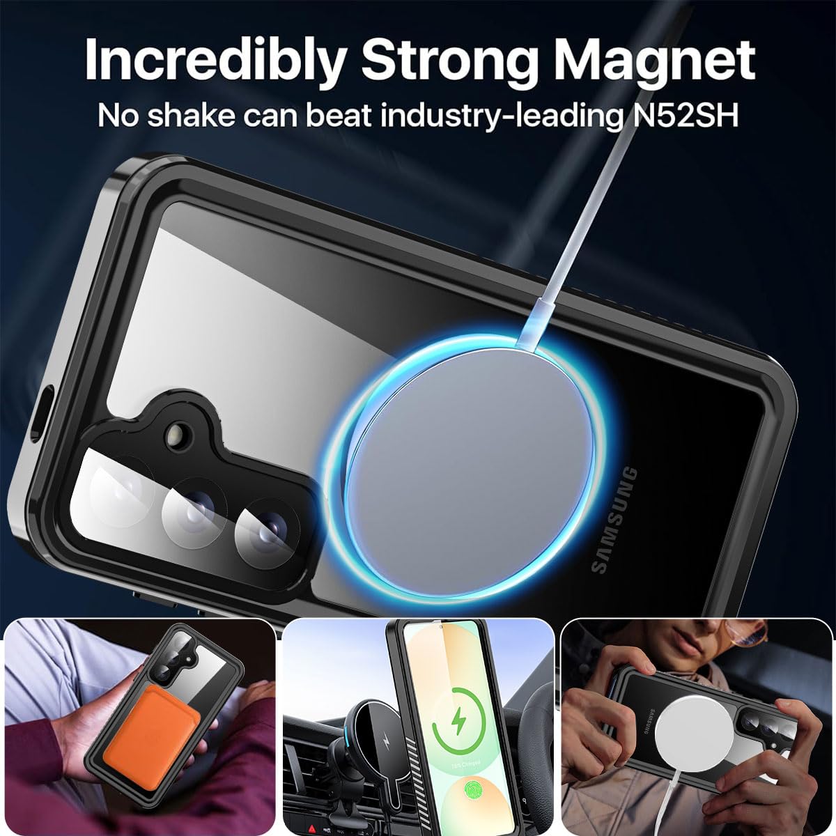 AICase防水ケース Samsung Galaxy S24 FE用 MagSafe対応 防雪、防塵/耐衝撃、IP68認証 360フルボディプロテクション 完全密閉水中カバー ブラック