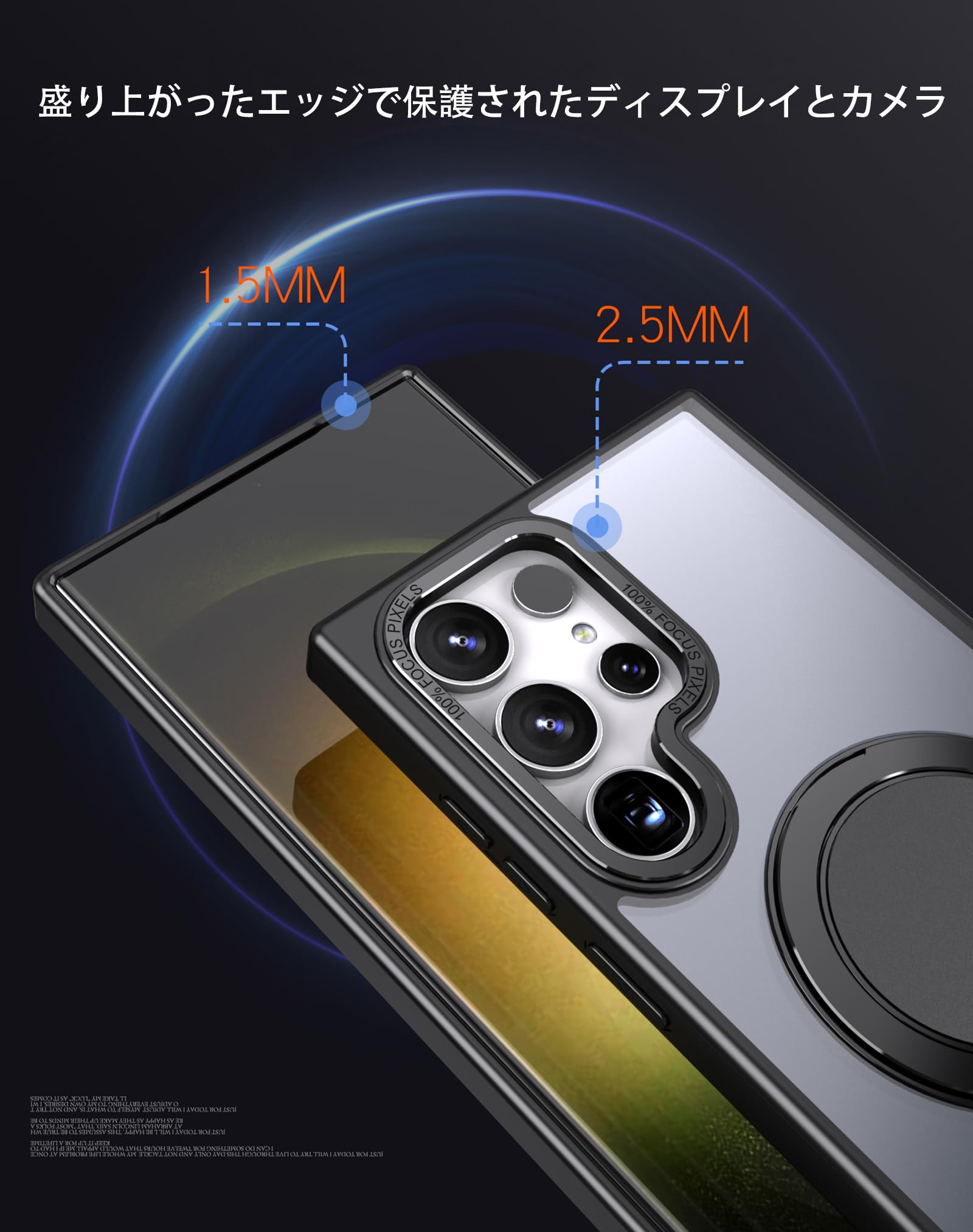 【数量限】HCXLYP Samsung Galaxy S24 Ultra ケース MagSafe対応 多機能360度回転スタンド 縦横両対応 リング N52マグネット搭載 ワイヤレス充電対応 米軍MIL規格 耐衝撃性 ギャラクシー S24 ウルトラ ケース アジャスタブルスタンド 6.8インチ ブラック | GIGATERA