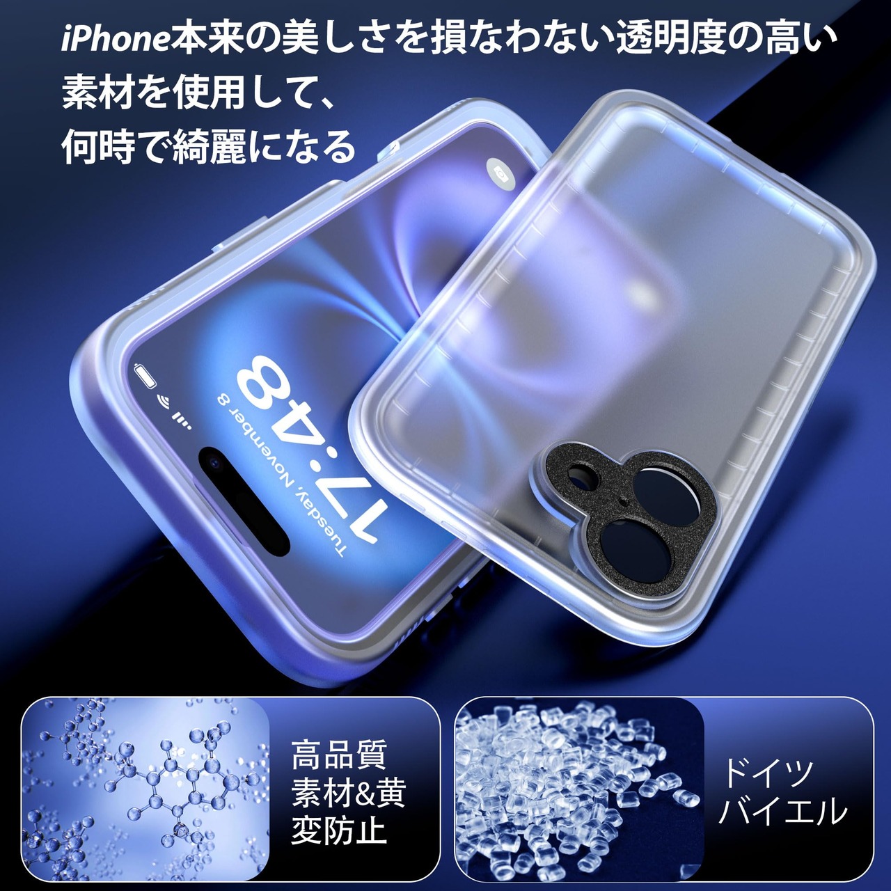 【高品質素材&黄変防止】ドイツの黄変防止TPU素材や、高品質のPC素材を採用しております。黄変防止因子を添加しました。iPhone本来の美しさを損なわない、スリームが感じますので、何時で綺麗になります。