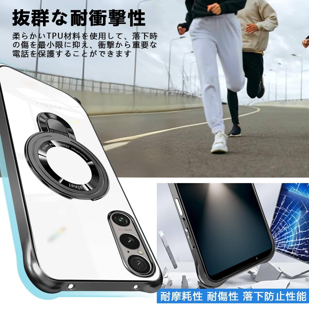 【新着】SONY Xperia 1 VII ケース クリア ショルダー 透明 SO-51F/SOG15 リング付き xperia1 vii カバー スタンド機能 エクスペリア1 Vii ケース マグネット搭載 360°回転スタンド 耐衝撃 米軍規格 紐付き 斜めがけ 織りストラップ付き ネックストラップ ショルダー 縦/横 2WAY 長さ調整可能 取り外し可能 落下防止 紛失防止(ブラック) | GIGATERA