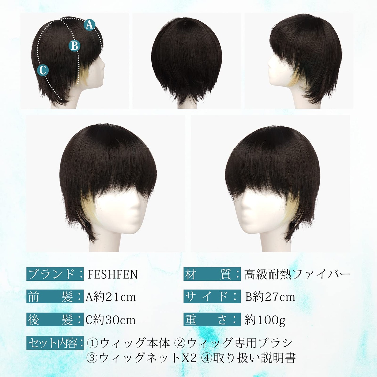 FESHFEN ウィッグ メンズ かつら ショート インナーカラー フルウィッグ 男装 黒 男性 原宿 イケメン ハンサム 自然 小顔 耐熱 人気 ファッション イメチェン 男女兼用 短髪 美男 ネット/櫛付き