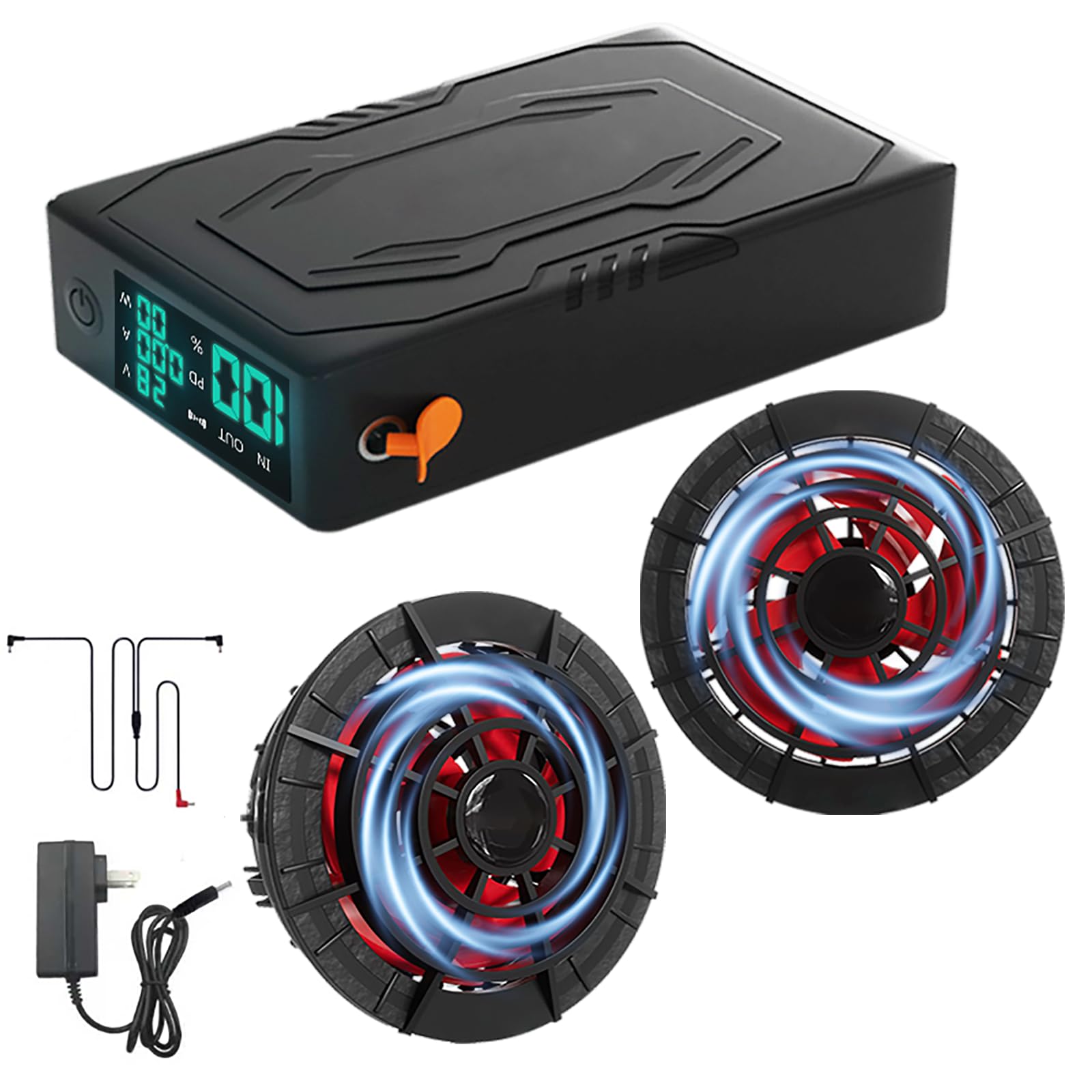 【特価】空調作業服 ファンバッテリーセット【2025最新&40000mAh大容量&28V暴風】日本製ブラシレスモーター 4段階風力調節 ファ ン付きベスト用 バッテリーセット LCD表示 超長時間稼働 PSE認証済み 空調ファン 熱中症対策 急速充電器付き 屋外作業 穴直径9cmのあらゆる作業着対応 暑さ対策グッズ | GIGATERA