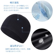 【接触冷感、クール感UP!】:触るとひんやりする接触冷感素材アイスシルクを使用して、 水や汗で濡れると気化熱の作用により冷却効果があります。夏用インナーキャップを長い時間着ていてもベタベタな感じがなく、一日中快適に着用できます。
