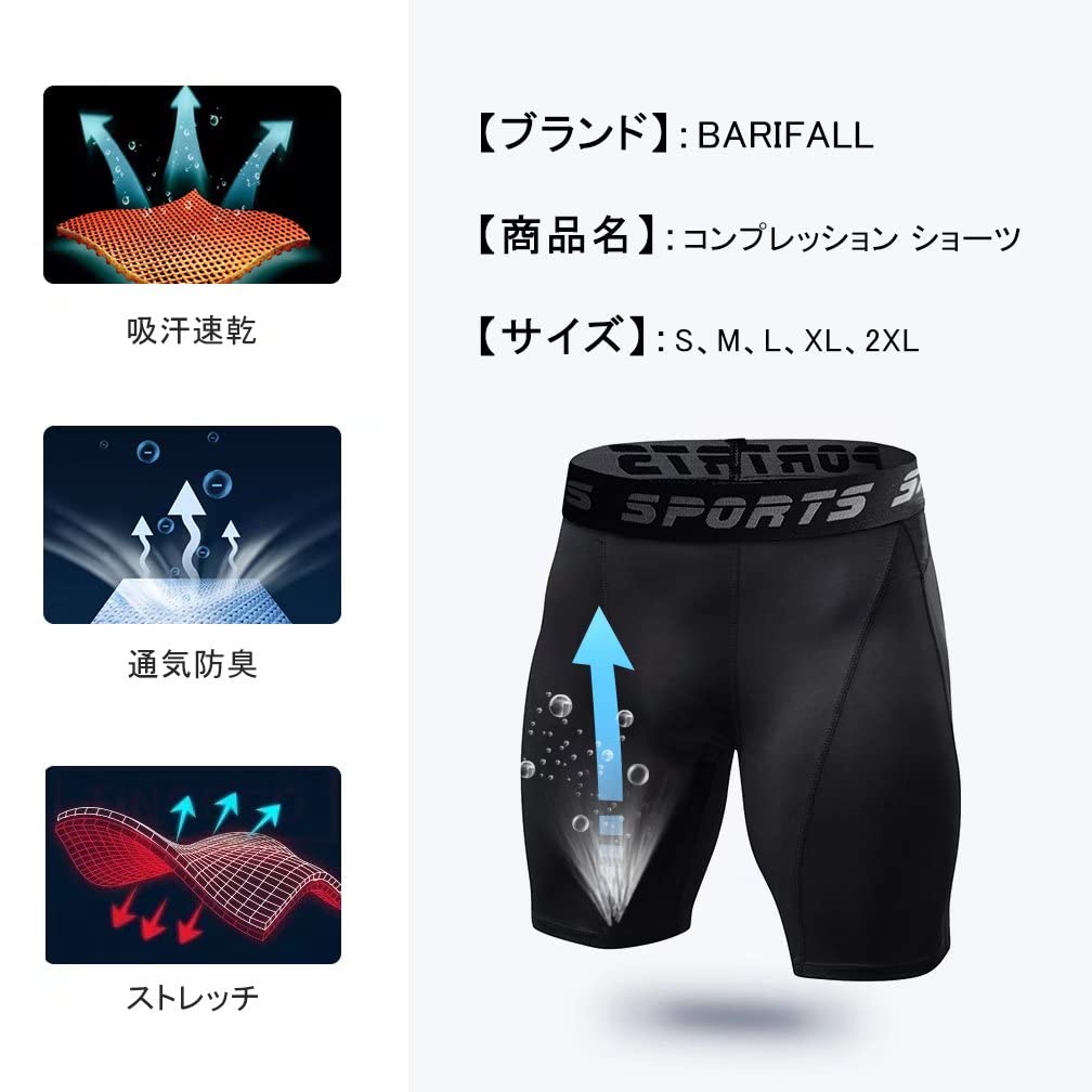 [Barifall] スポーツ ショート タイツ メンズ スパッツ レギンス コンプレッション ショート タイツ パワーストレッチ アンダーウェア [通気 吸汗 速乾 冷感 ]