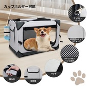 ??【実用性・多機能】①給水ボトルバンド付き:おでかけ先でも便利な給水ボトルが取り付けられるバンド付き;②ロック付きジッパーでいたずらの子も安心に使えます;③様子が見える四面メッシュ:愛犬の様子が一目でわかる、扉は巻き上げて固定できる;④中に飛び出し防止リードが付属しており、より安全に使用できます;⑤キャリーケース片側にはペットのスナックやおもちゃを置くのに使えるポケットがある;⑥四隅に衝撃吸収パッドが設置されており、キズを予防するとともに家具や車内も保護します。