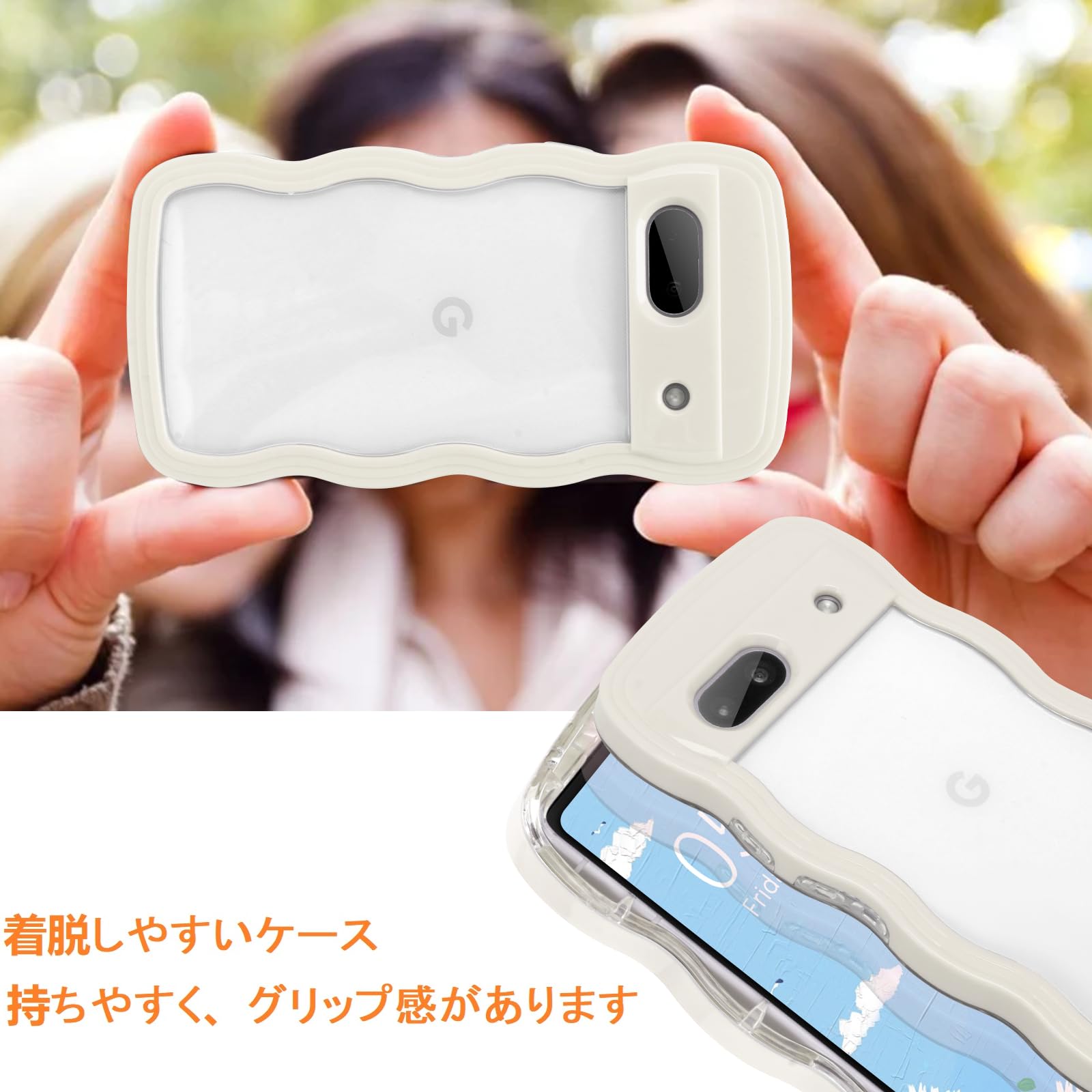 HILEGENER Google Pixel 8A かわいい ケース 波状フレーム うねうね 耐衝撃 グーグル ピクセル8A 6.1インチ用滑り止め スマホケースウェーブ デザイン 手にフィット スマホカバー 韓国 可愛い 女性用 女子向け クリア ソフト TPUカバー 波状エッジ ソフトシェル ケース 人気 落下防止 耐衝撃 全面保護 ワイヤレス充電対応(Pixel 8A-ホワイト)