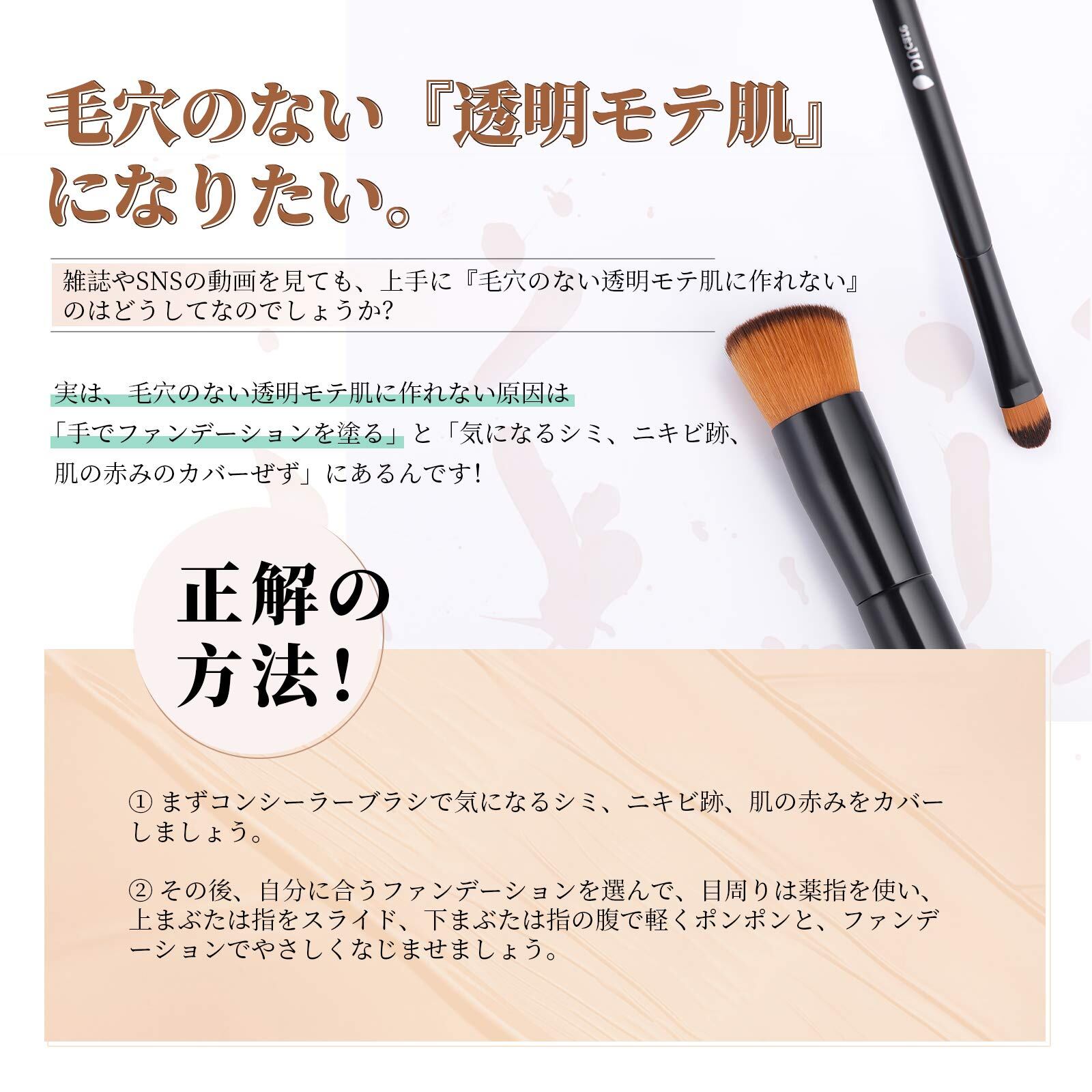 DUcare ドゥケア 人気 メイクブラシ ファンデーションブラシ コンシーラーブラシ 肌に優しい 最高級のタクロンを使用 崩れにくいベースメイクに(2本セット)