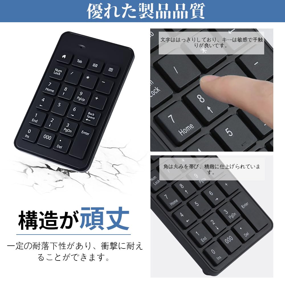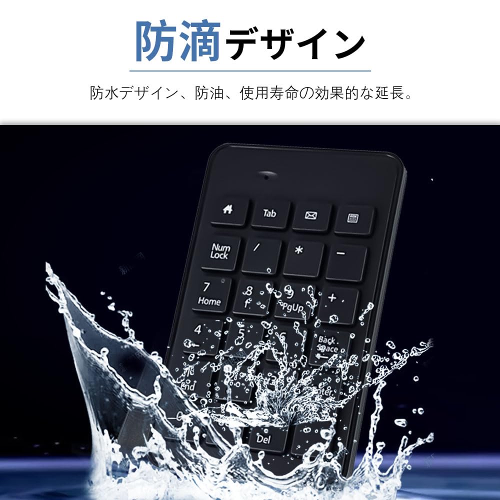 USB-A テンキー2.4G テンキー ワイヤレス レシーバー付属 薄型 Tabキー付き 無線 ナンバーパッド 数字キーボード Windows/iOS/Android対応 ブラック(Bluetoothではありません)