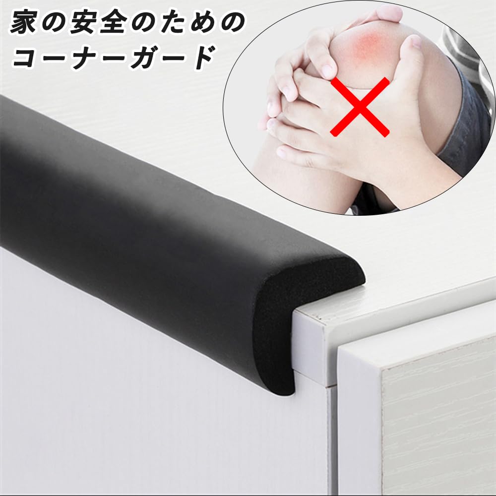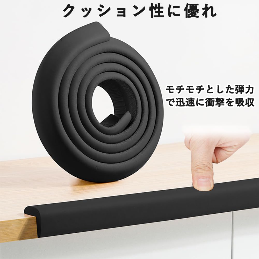 harukita コーナーガード コーナークッション クッション 家具の角を保護 ケガ防止 衝撃吸収 L型 両面テープ付き ブラック 長さ2m