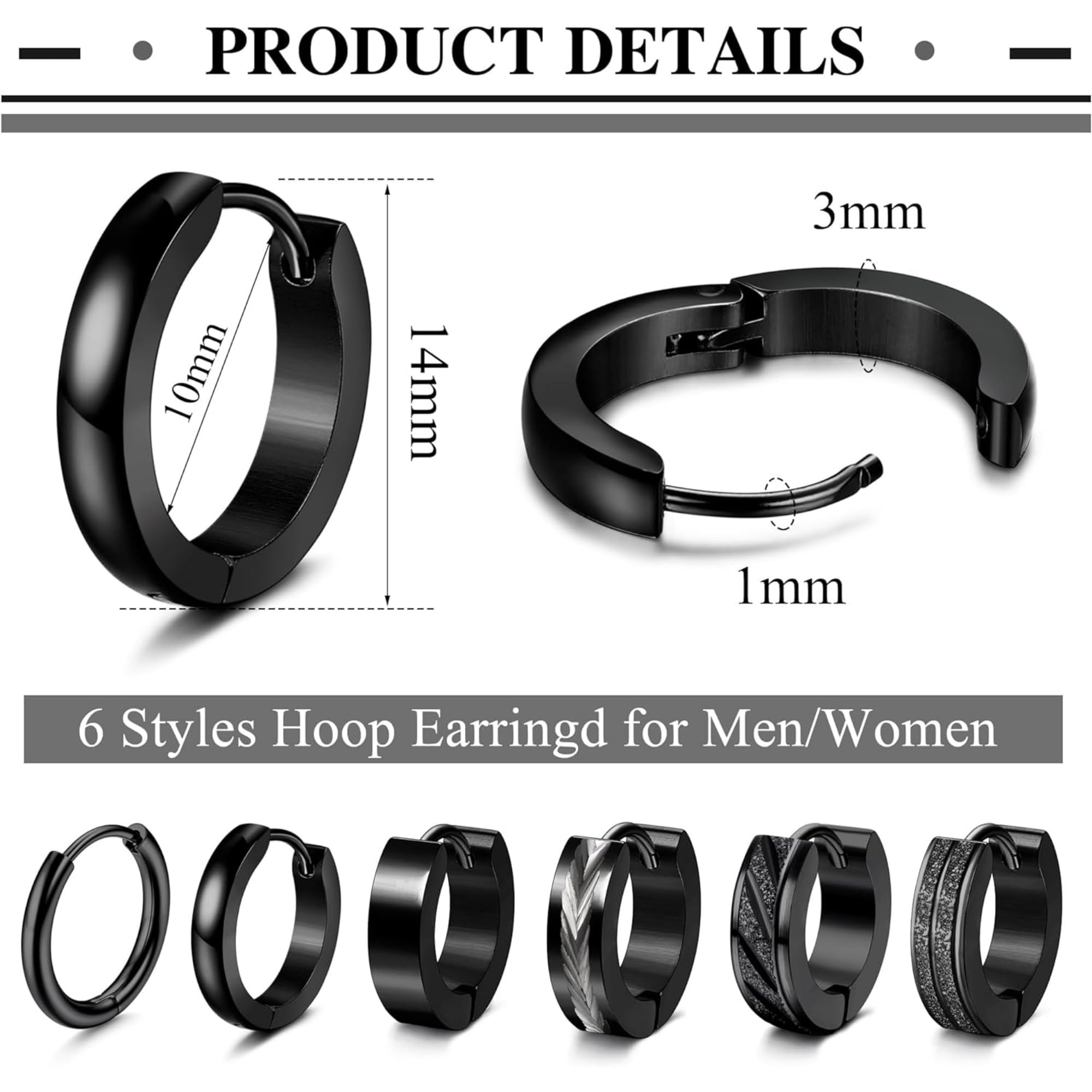 【メンズフープピアス】さまざまなスタイルの6ペアのハギーフープピアスをお届けします。小さなフープピアスは個性が溢れていてクールで、男性にも女性にも適しています。マルチスタイルのフープイヤリングには複数の選択肢があり、毎日のさまざまな着用ニーズを満たし、あなたの魅力を示し、より多くの褒め言葉を獲得します。