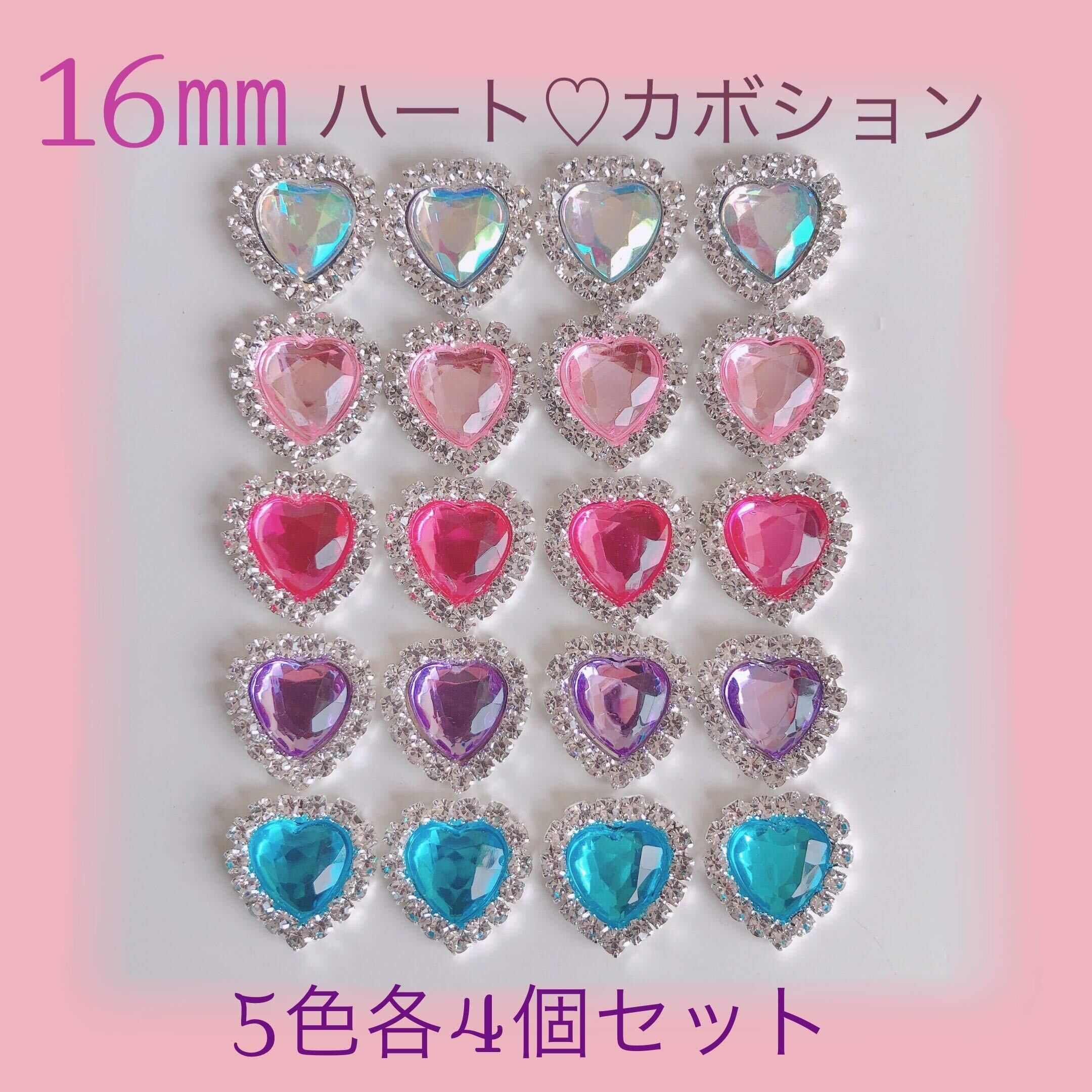 【ラッピングファクトリー】オリジナルケース付き キラキラ ハート カボション ビジュー 20個セット ゆめかわ ピアス ハンドメイド ラインストーン (ビジュー16mm)