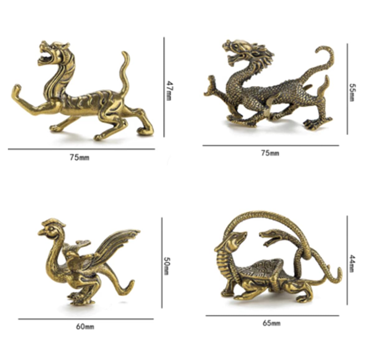 xiulin 風水グッズ 銅製四神獣 青龍 白虎 朱雀 玄武 置物 ミニサイズ 四神相応 霊獣 東西南北 インテリア 風水雑貨 風水アイテム 4個セット