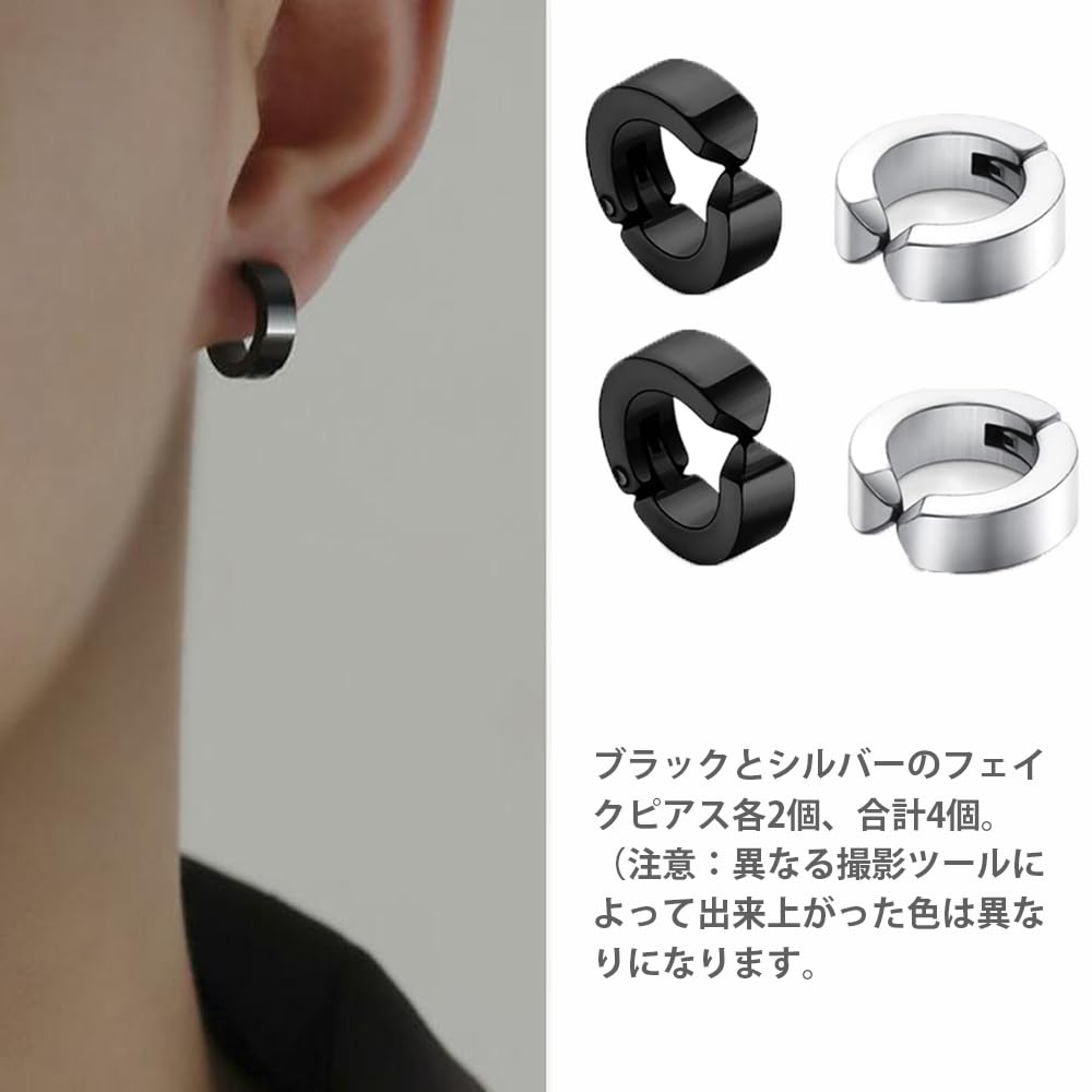 【商品仕様】ブラックとシルバーのフェイクピアス各2個、合計4個。(注意:異なる撮影ツールによって出来上がった色は異なりになります。