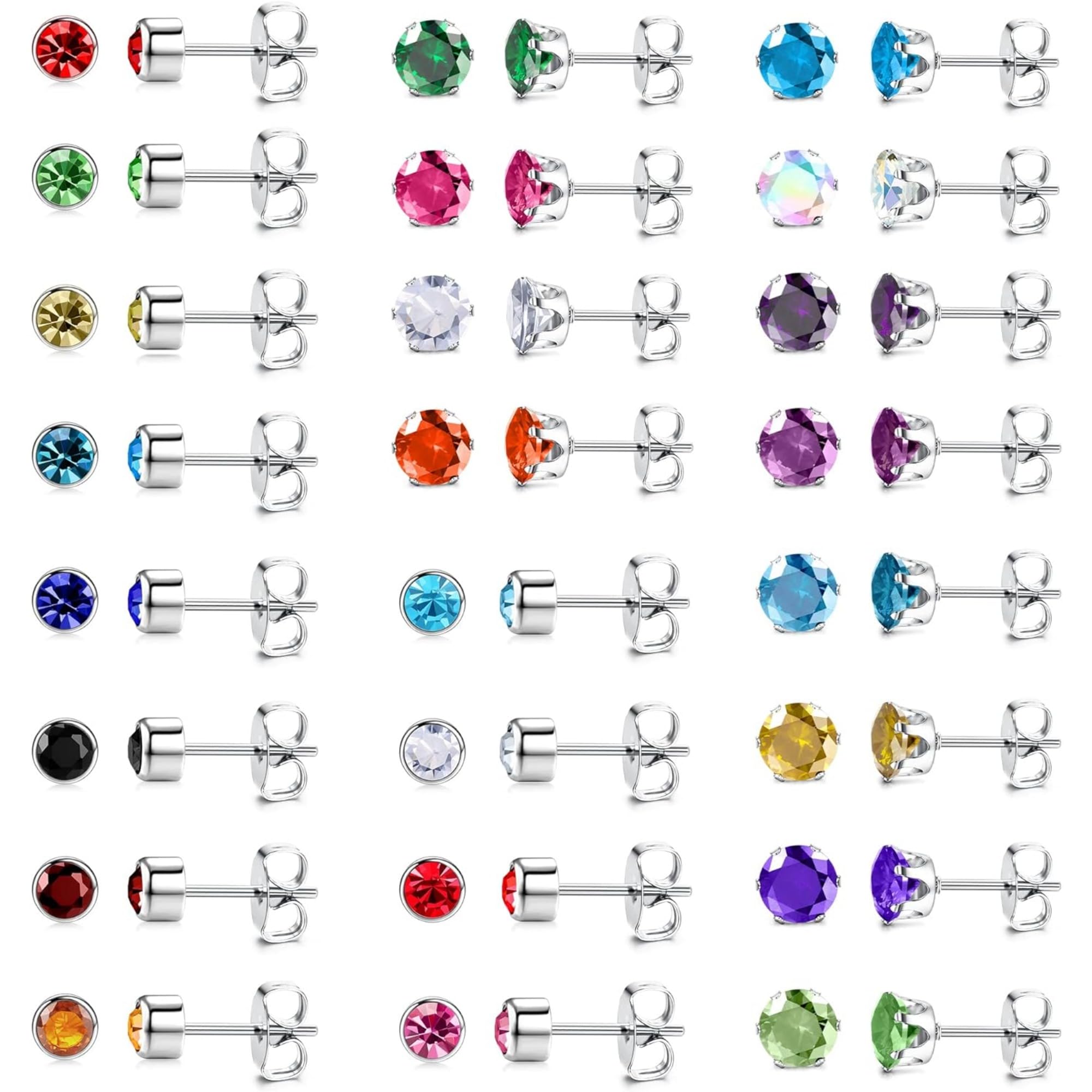 【キュービックジルコニアスタッドピアスセット】キュービックジルコニアピアス24ペアが含まれます。さまざまな色からお選びいただけます。色が異なると、異なる着用体験が得られます。シンプルで光沢のあるラウンドキュービックジルコニアインレイは、よりファッショナブルで魅力的です。