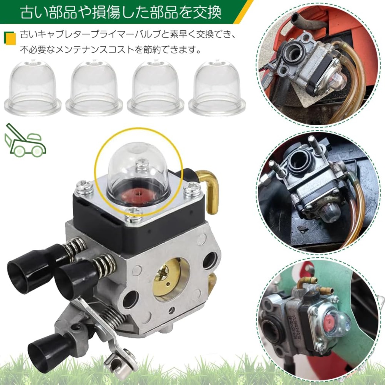 完璧な交換:効果的に空気の侵入を防ぎ、芝刈り機の良好な連続運転を回復することができます。古い部品や破損した部品をいつでも交換したり、複数のエンジンに同時に使用することができます。