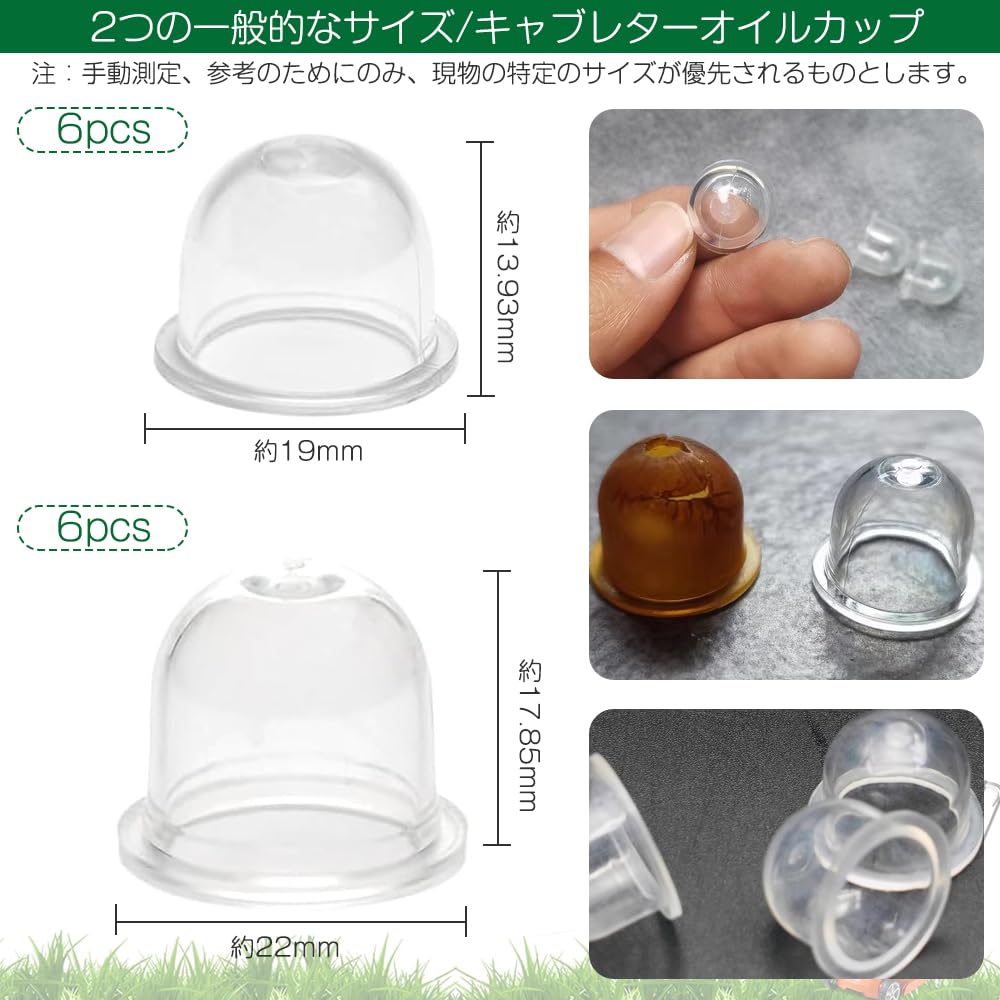 オイルカップ 12個セット プライマリーポンプ キャブレター パーツ 部品 草刈機 刈払機 チェーンソー 交換用 取り付けが簡単 分解清掃も簡単 交換用部品 透明(外径19mm/22mm2サイズ各6個)