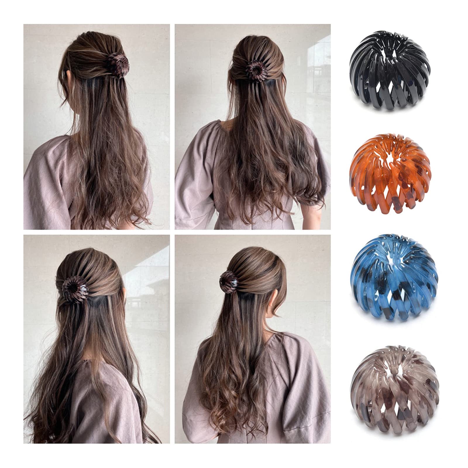 鳥の巣ヘアクリップ 4個セット シュシュ 髪飾り ヘアクリップ 可愛い 簡単 数秒で髪を結ぶ 団子ヘア ヘアアクセサリー おしゃれ 大人 子供 安い お団子 ピンク ヘアゴム 黒 かわいい 髪留め シンプル レディース 髪飾り 静電気防止 ヘアアクセサリー 女の子 人気 少女