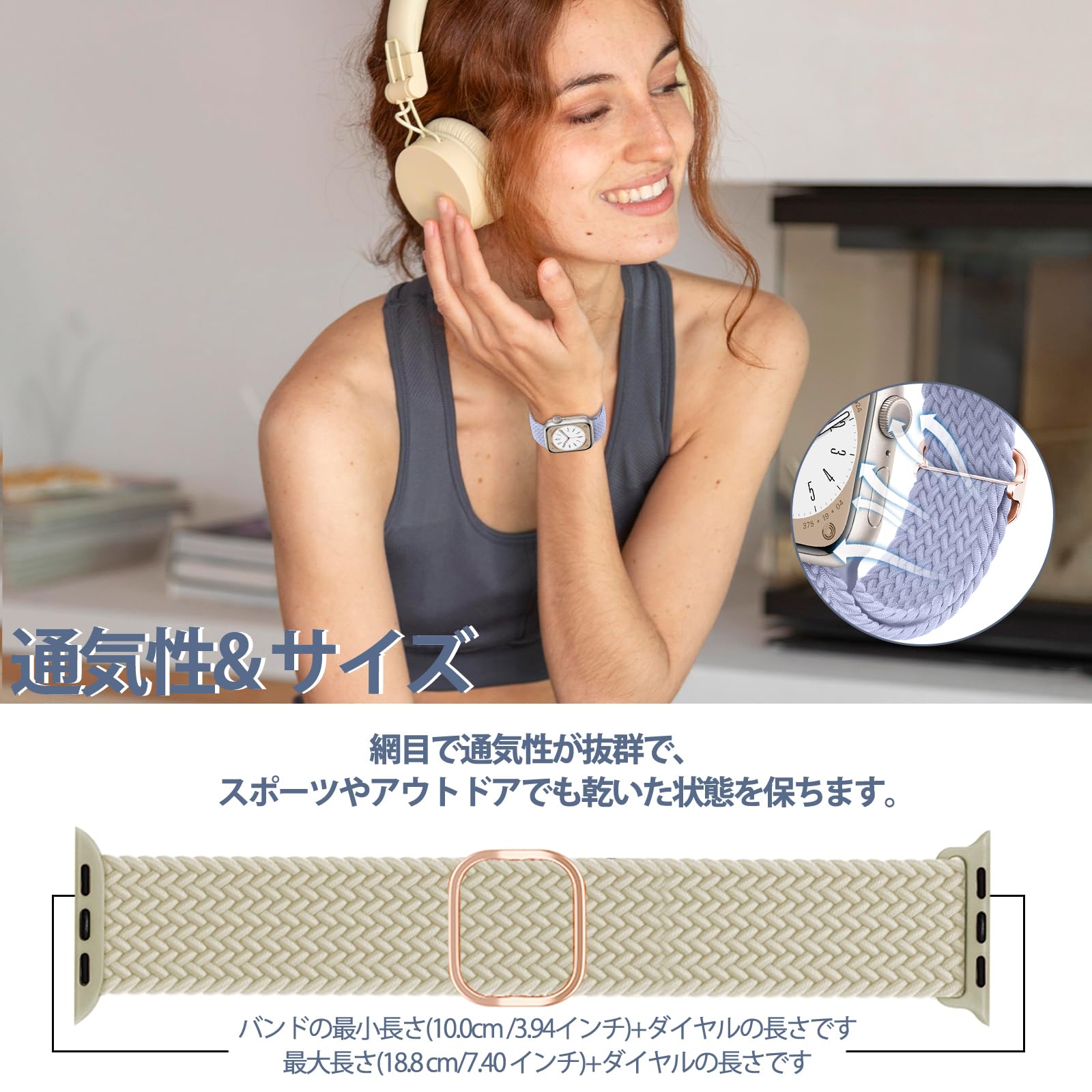 【人気】LanQii コンパチブル アップルウォッチ バンド 42mm 41mm 40mm 38mm Apple Watch ナイロン【2枚セット】バンド 編み込み スポーツ アップルウォッチベルト Series 10 42mm 9 8 7 6 5 4 3 2 1 SEに対応 長さ無段階調整 柔軟 防汗 夏向け-スターライト/グレーパープル | GIGATERA