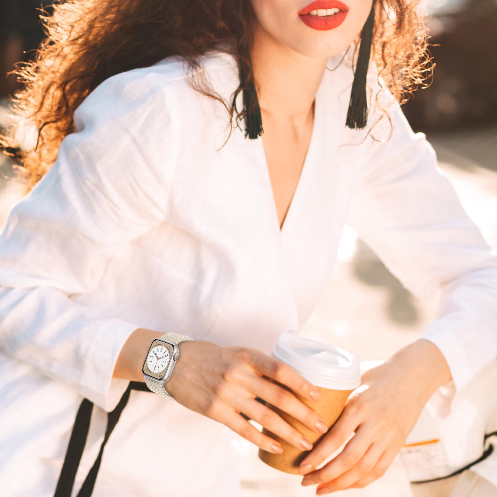 ?【快適な着け心地】LanqiiのApple watch 交換用 バンドは、伸縮性である高品質ナイロン素材で作られています。軽量で柔らかいし、滑らかなバンド編み面は肌に快適な感触を与えて、肌にもやさしいです。バンドの長さも丁度良い感じに調整できて、ユルすぎず、キツすぎず、いつも快適に着けます。