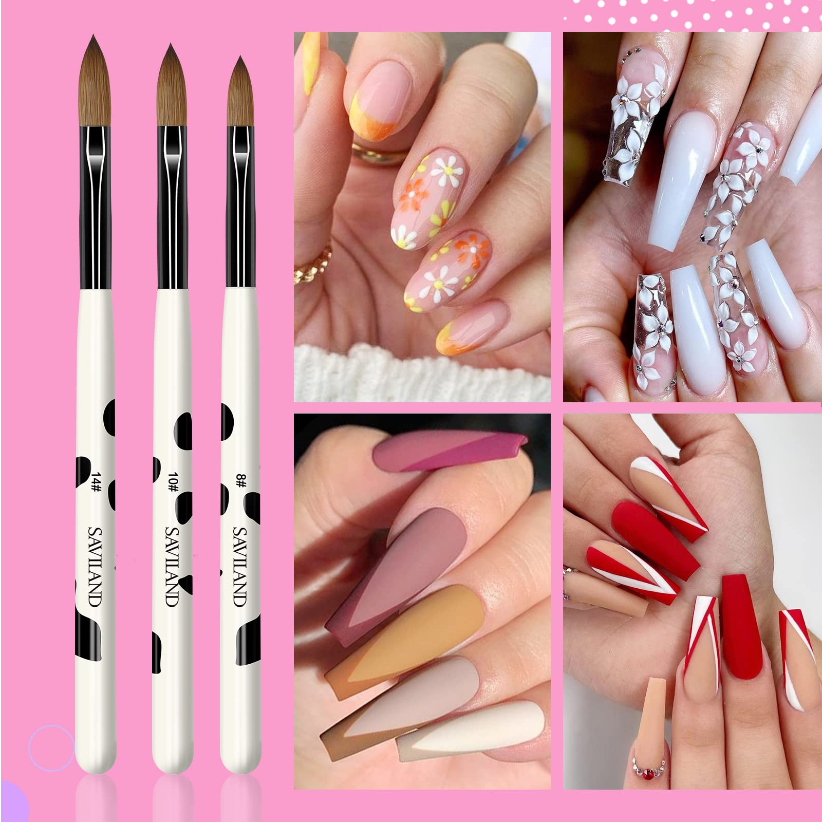 Saviland ネイルブラシ 3本セット ジェルネイル筆セット 初心者 ジェルネイルブラシセット 可愛い ジェルネイル用品 ネイルアートブラシ ネイルブラシキット
