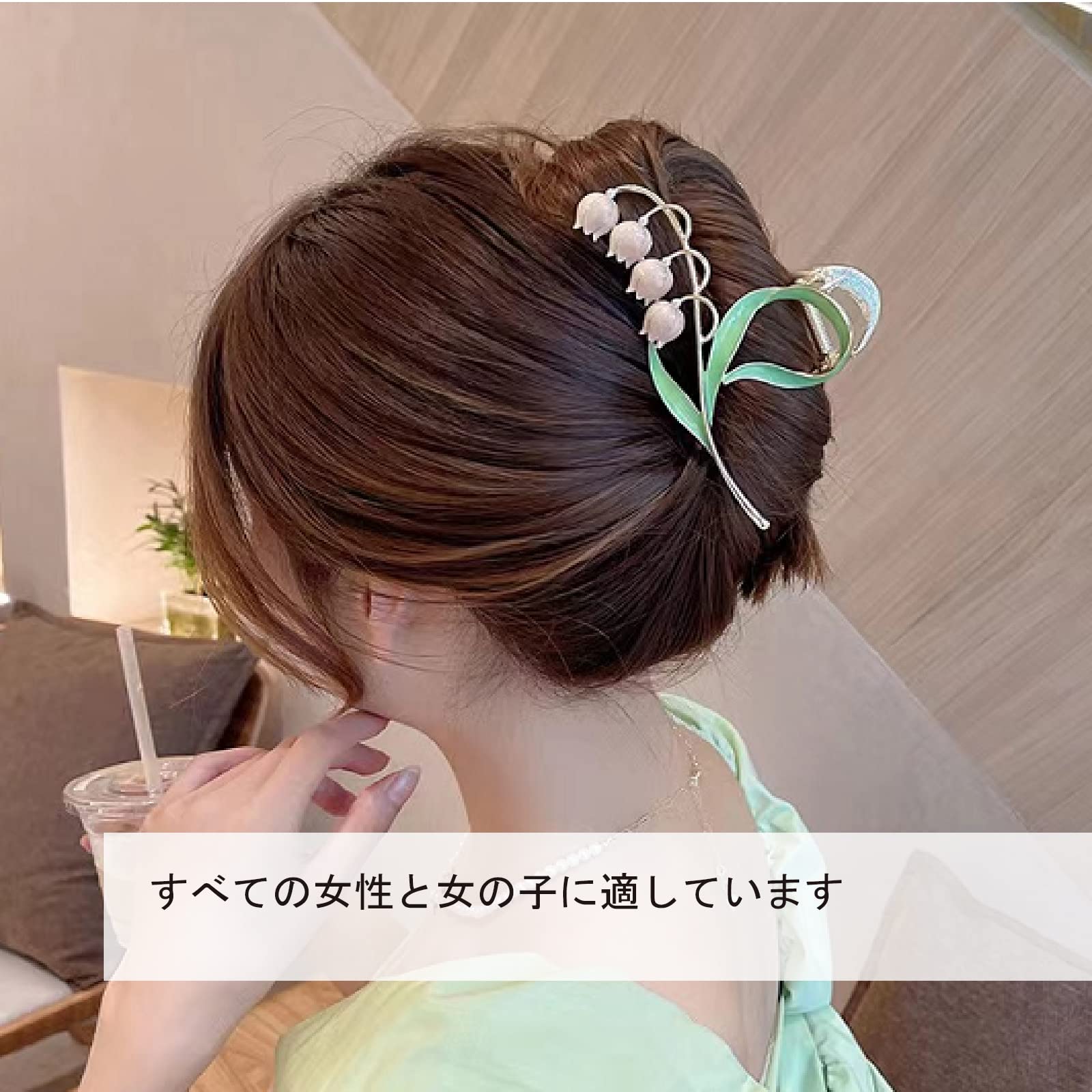 チューリップ型ヘアクリップ 髪にツヤを与えます。 幅広い年齢層の女性におすすめです。 華やかさと上品さを感じさせるエレガントでスイートな表情を実現。