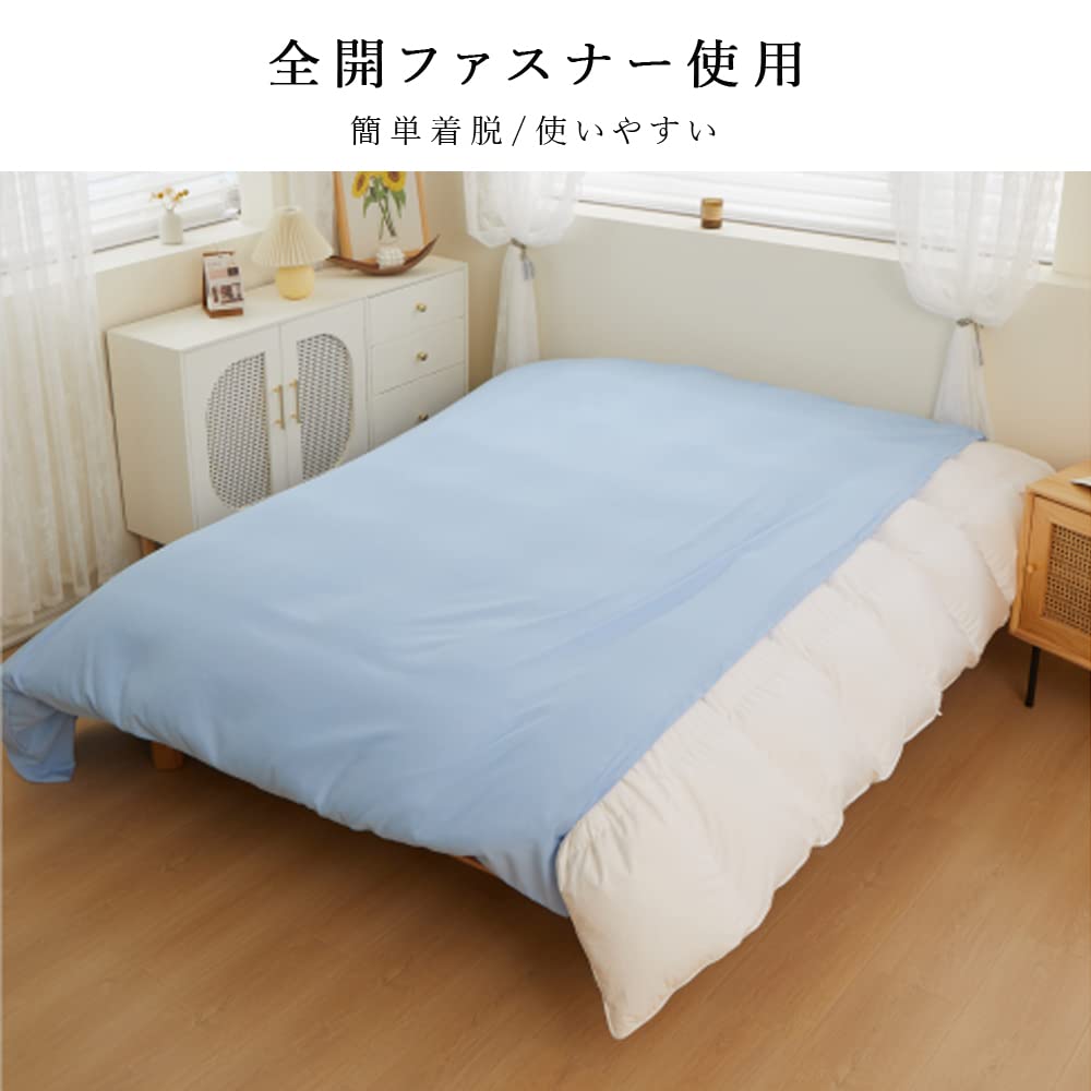 【全開ファスナー&4ヶ所紐付き】:片側に全開ファスナー使用、簡単着脱できます。布団留めひも4ヶ所付き:掛け布団の紐通しにカバーのひもを通して結びこどで、布団とカバーがずれにくいです。