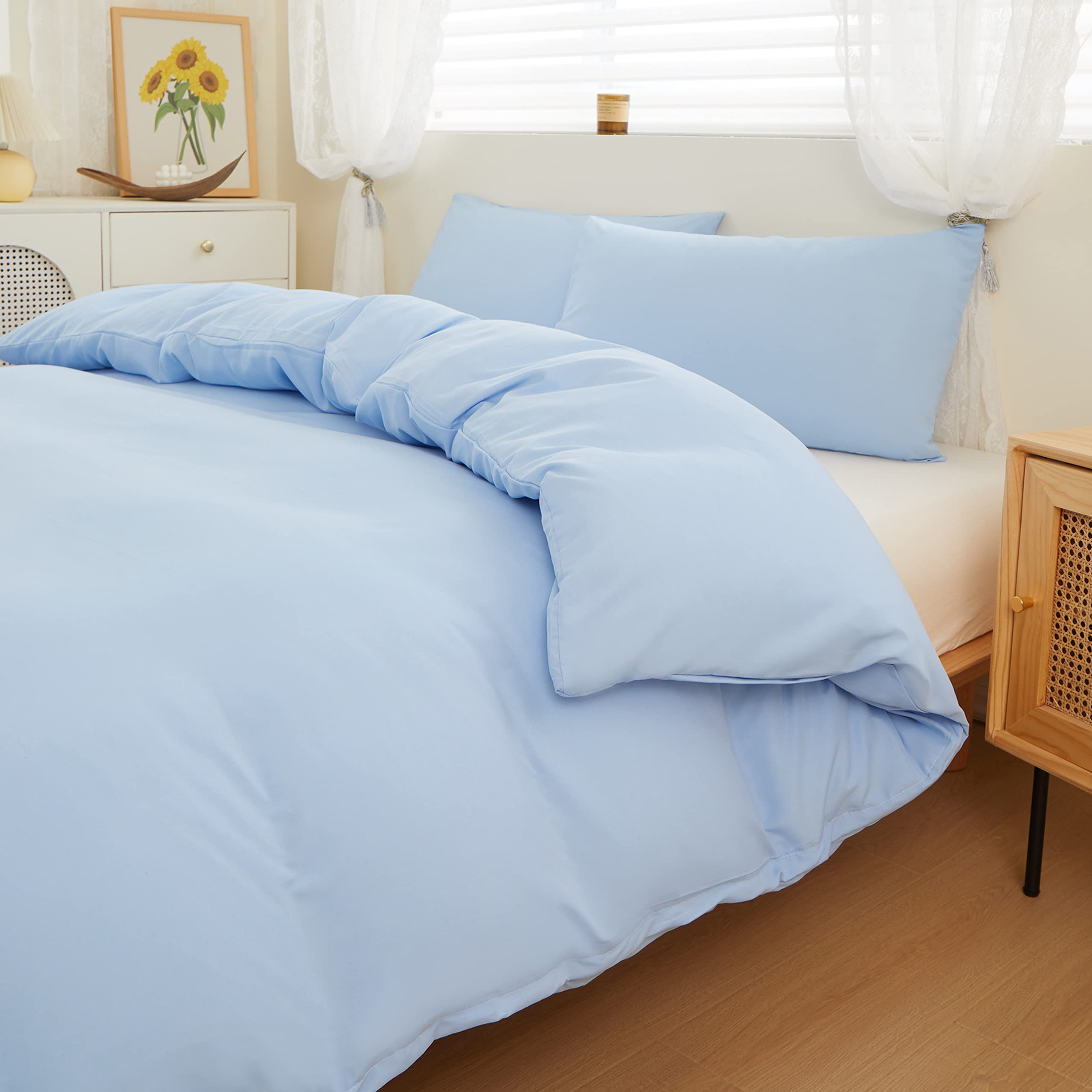 掛け布団カバー シングル 布団カバー 掛けふとんカバー 速乾 かけ布団カバー 洋式・和式兼用 布団カバー 掛けカバー 抗菌防臭 4ヶ所紐付き (掛け布団カバーシングル:150x210cm, ブルー)