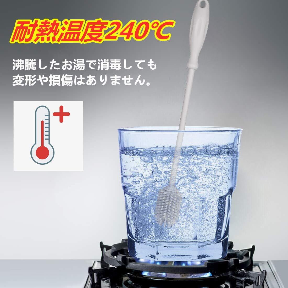 ?【頑丈で高温に耐える】耐久性のある哺乳瓶ブラシは細さのために効果的に汚れを除くことができます。最高使用温度は250℃に達する可能性があり、熱湯や食器洗い機でも安全に使用できます。