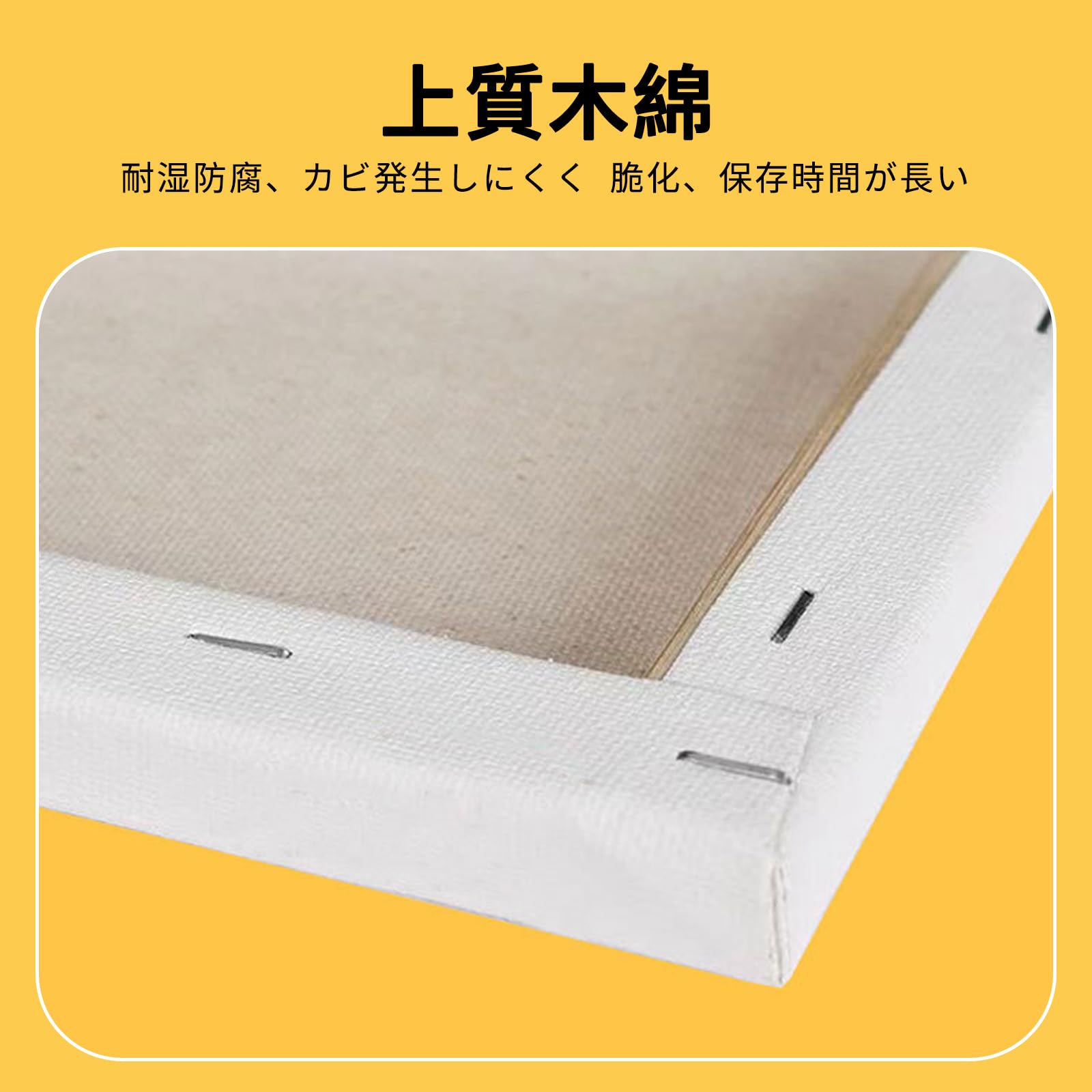 【素材】100%コットンキャンバス - 自然な風合い、高い着色力、優れた触感を備えた長繊維綿で作られます。塗装キャンバスの綿の表面は収縮せず、すべての場合に使用が安定しています。綿のキャンバスは絵の具をしっかりと保持し、自然な色調と光沢の表現ができます。