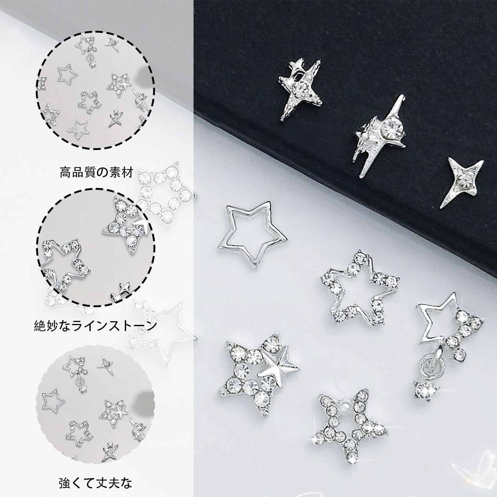 【ネイルパーツ】星型のネイルパーツです。キラキラしているラインストーンが飾って、ネイルのワンポイントにぴったり。自宅でも綺麗なネイルを楽しみいただけます。