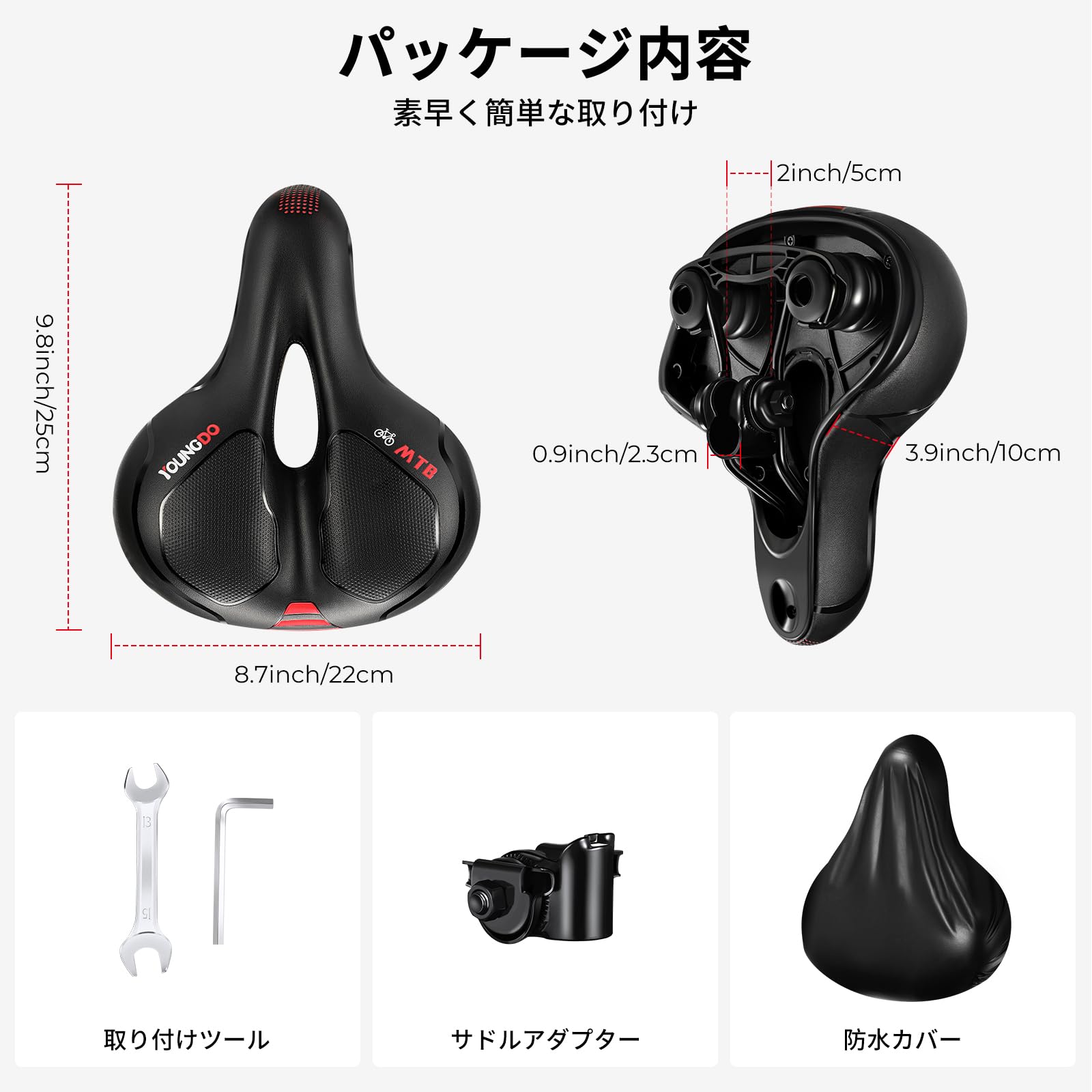 ★【人間工学に基づいたデザイン】 座面が大きく、肉厚でお尻への衝撃を分散・軽減し、長時間でも快適に走行できます。 サイズは25cm×20.8cm×11cmで 、ロードバイクやマウンテンバイク、クロスバイク、折りたたみ式自転車など幅広いタイプの自転車に適応しています。購入特典として、サドル保護カバーが付いています。