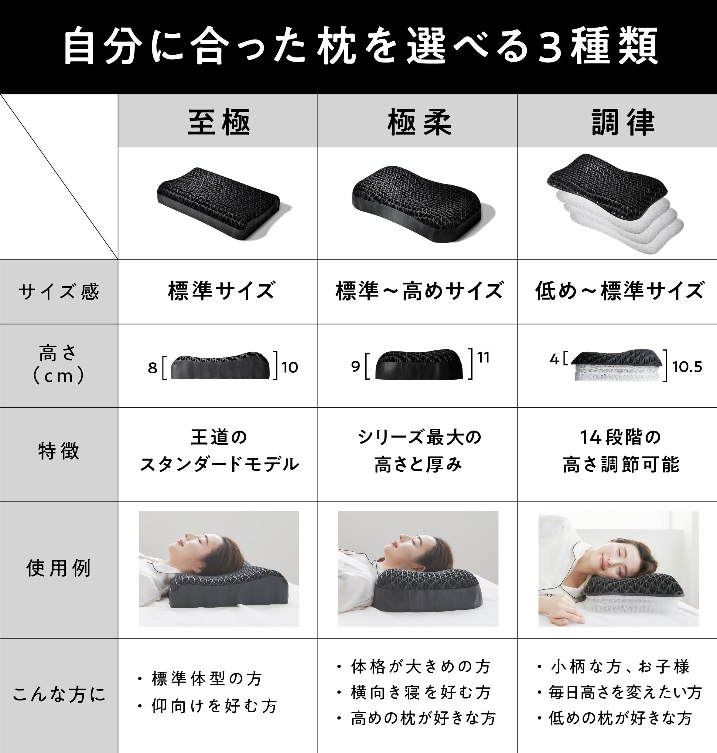 【選べる高さ】枕の前後を変えることにより、8cmと10cmを選べます
