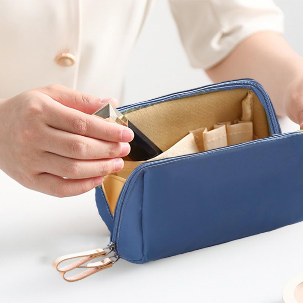 【収納便利】この小さな化粧ポーチは使うコスメをきちんと収納することができます。大きなスペースはトラベルサイズの化粧品や大型スキンケア用品を簡単に収納できます。サイドポケットにはコンシーラーやリップスティックなどの小物を収納することができます。コンパクトな手のひらサイズで、バッグの中でもスペースを取らずスッキリと収納できます。