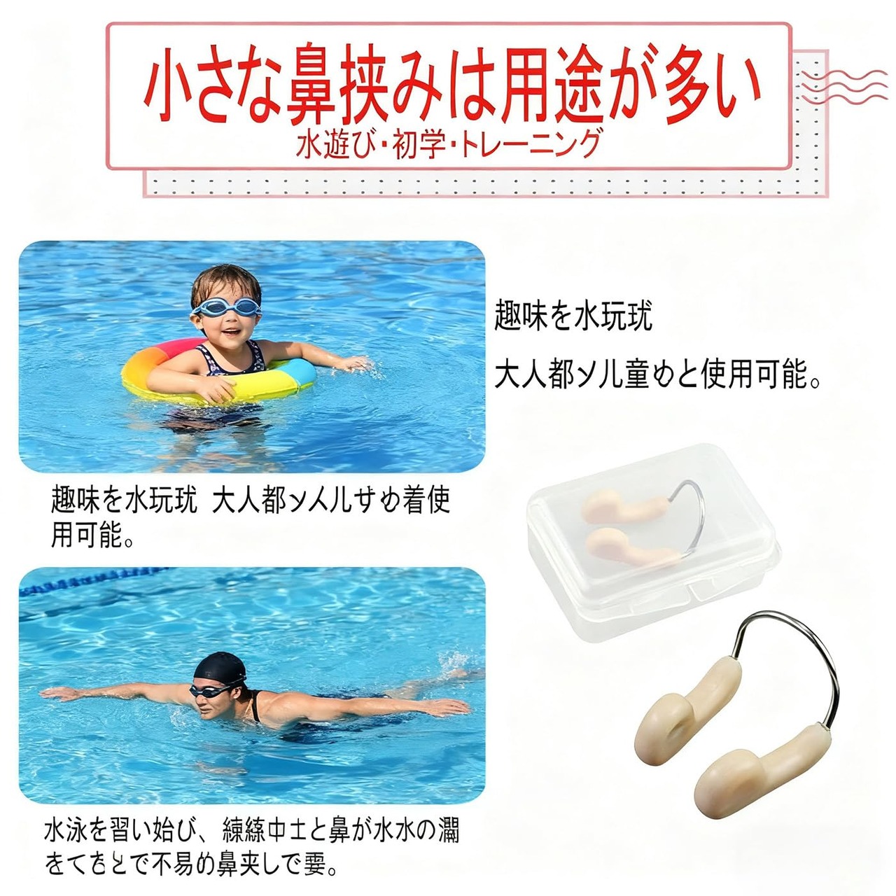防水ノーズクリップ 水泳 鼻栓水泳 2個セット 鼻栓 シリコン製 再利用可能 軽量 小型 初心者 背泳ぎ 男女兼用 水泳初心者 水泳活動 ケース付き