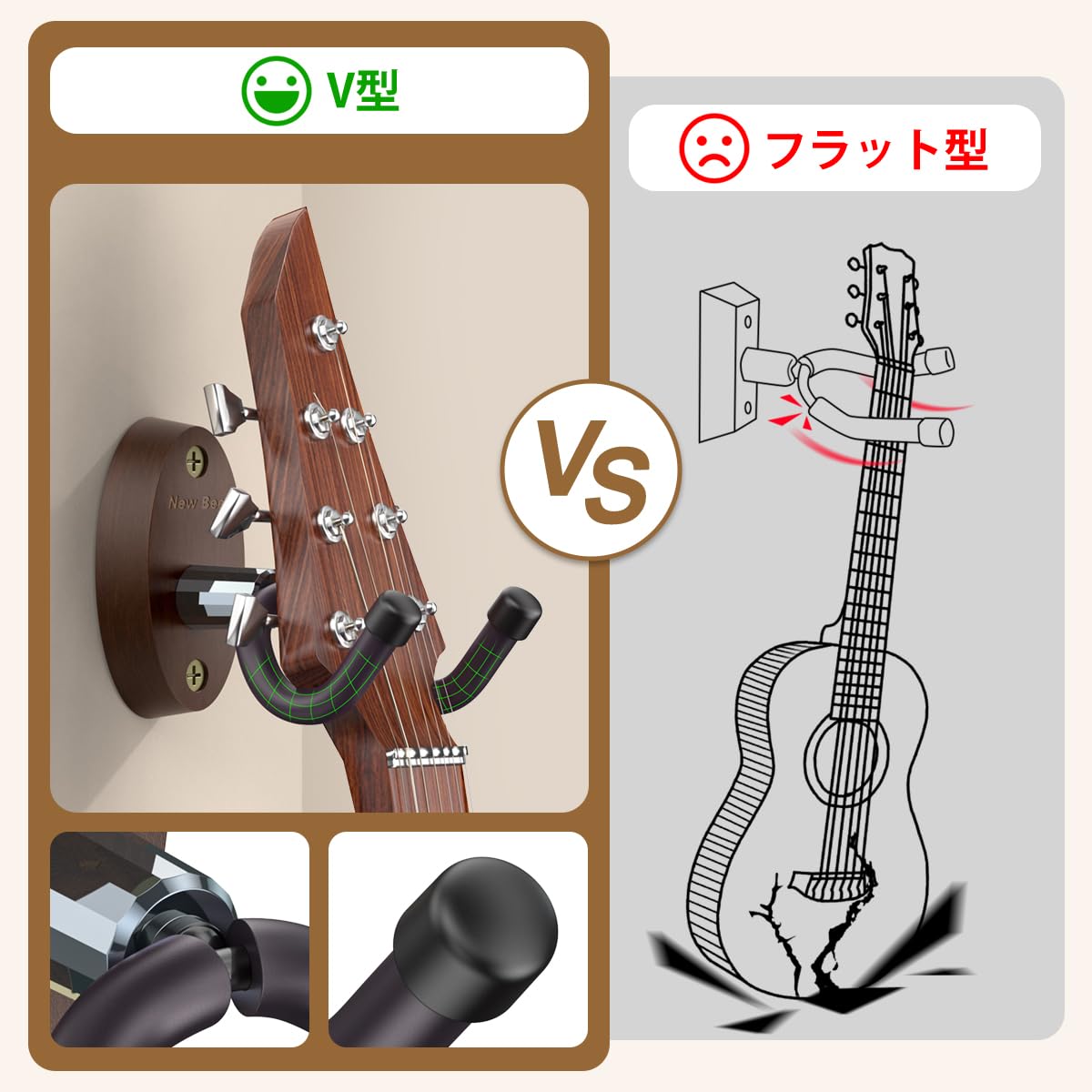 New Bee ギターハンガー 壁掛け ギターフック 安定 省スペース ギターホルダー 取り付け簡単 ギター ベース ウクレレなどの楽器に適用 GH01